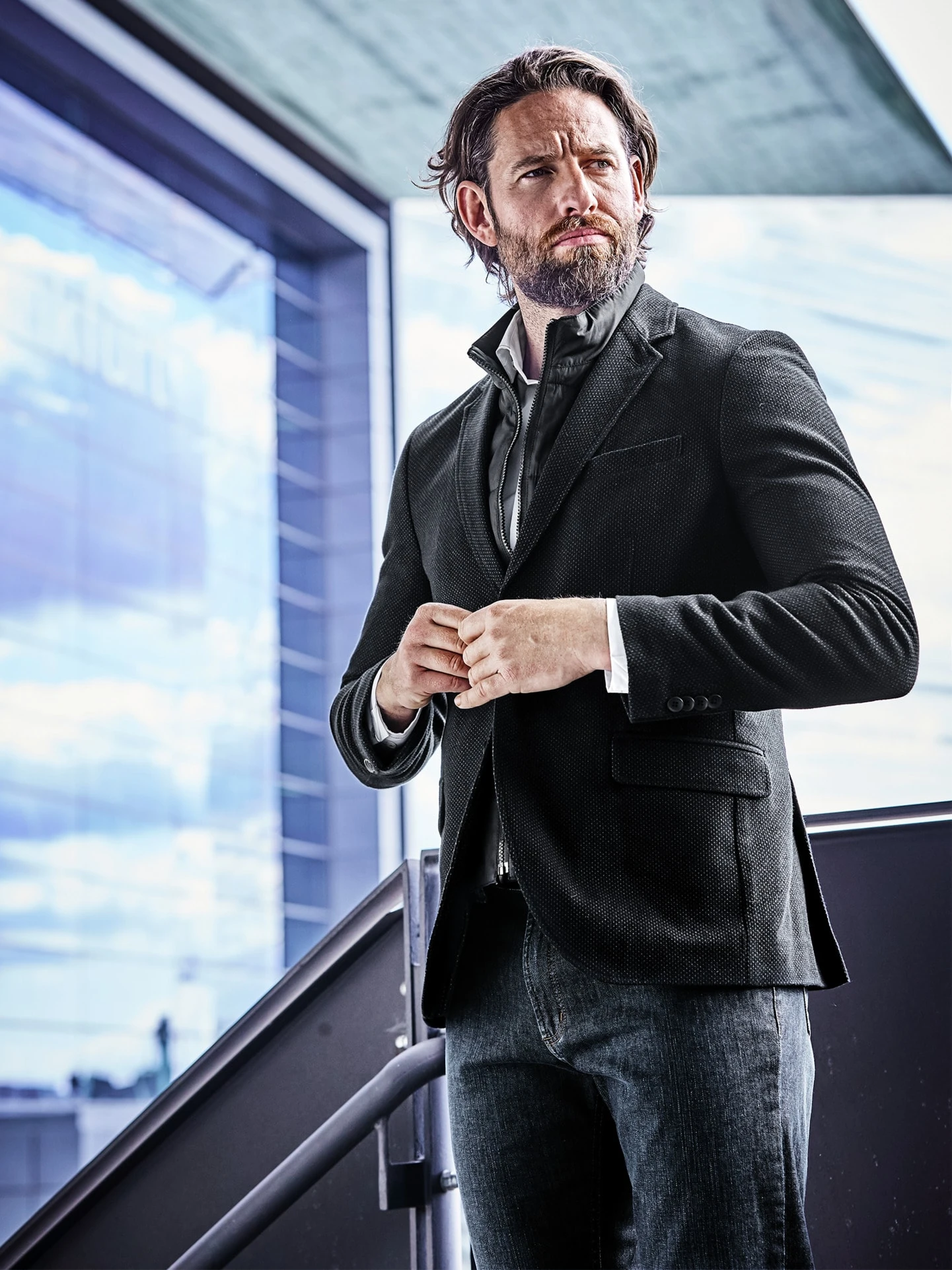 Dreihundertfünfundsechzig Tage im Jahr das richtige Sakko: Die Baumwolle trägt sich ganzjährig gut. Wenn’s kälter wird, einfach einen dickeren Unterzug einplanen. Sieben Tage die Woche: business- und freizeittauglich. Vierundzwanzig Stunden am Tag: korrekt mit gebügeltem Hemd, lässig mit T-Shirt darunter. Und theoretisch können Sie das Sakko sogar als Outdoor-Jacke tragen, dafür einfach die Sturmblende einzippen. Vielseitiges Pinpoint-Muster in Schwarz, das Sie zu vielem kombinieren werden.