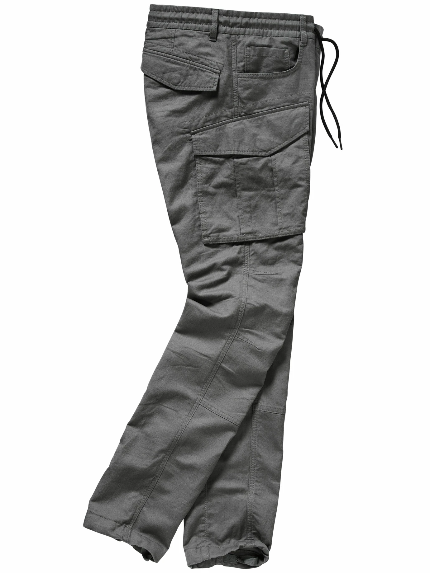 Verarbeitung: Five-Pocket plus zwei Cargotaschen. Gummibund, Tunnelzug, Gürtelschlaufen. Cutlines an Oberschenkeln und Abnäher an Knien für noch mehr Bewegungspielraum. Regular Fit.