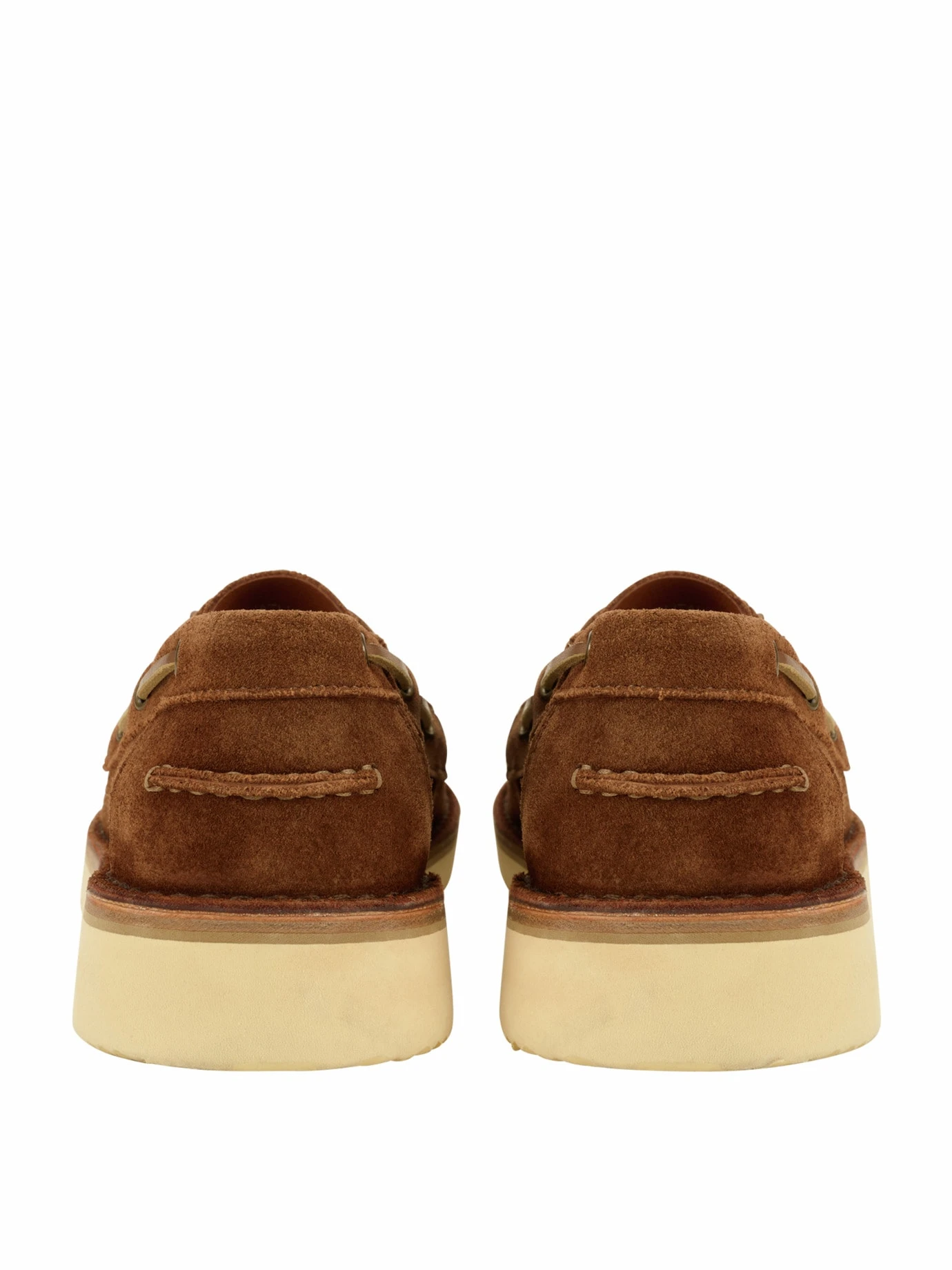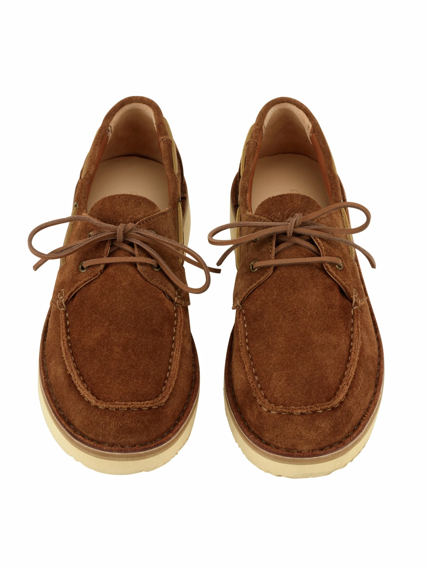 Pantoffel-bequemer Schuh. Entwickelt für das Tragen an Deck, wird der Bootsschuh samt freiheitsliebendem Lebensgefühl auch abseits der See kombiniert. Shorts und gekrempelte Hosenbeine passen dem Ursprung nach immer. Das Teakholzbraun passt zu Farbe und sogar zu Schwarz. Dank des Kalblederfutters auch barfuß. Designed und made in Italy, von italienischer Schuhmacherfamilie.