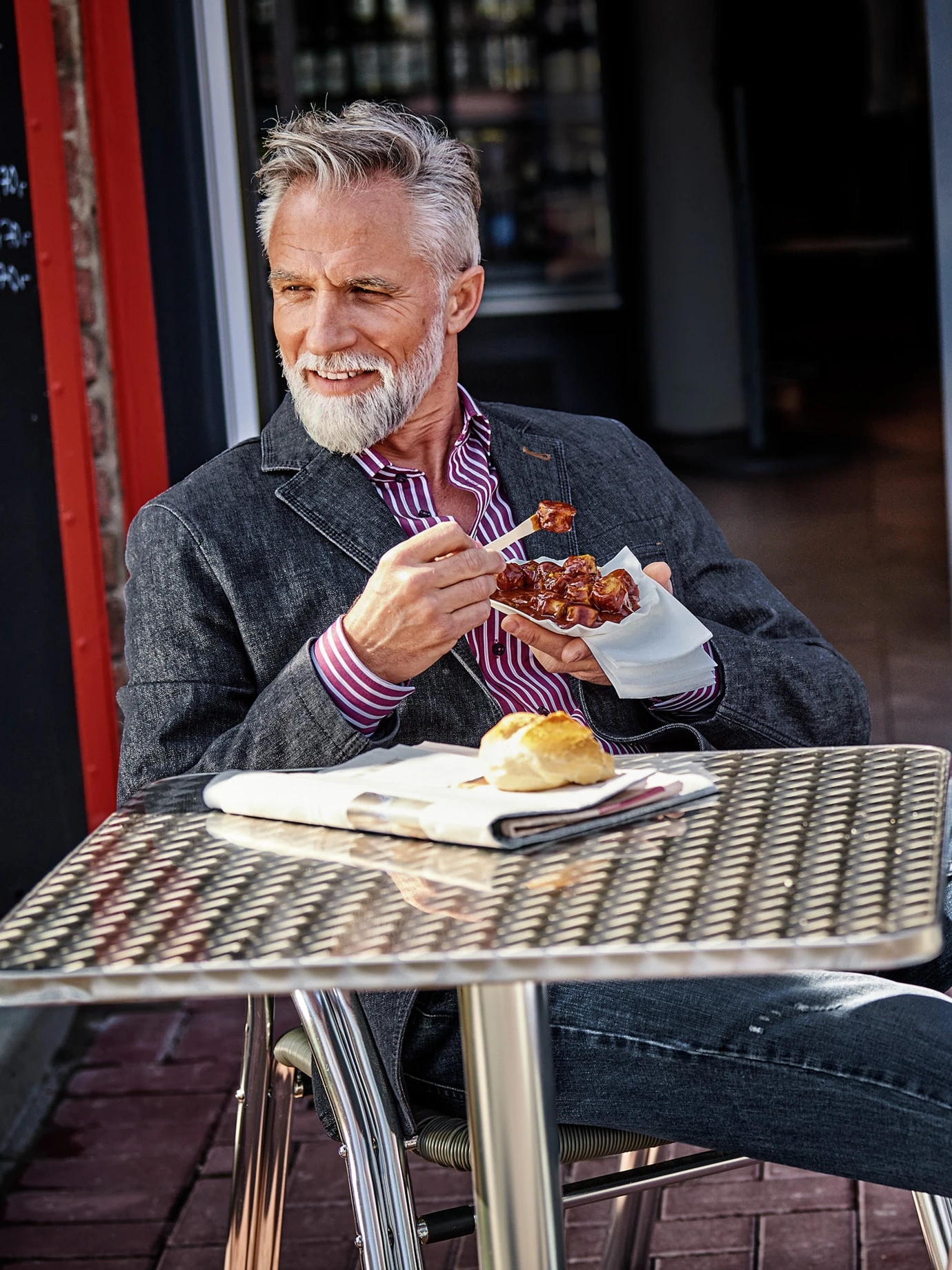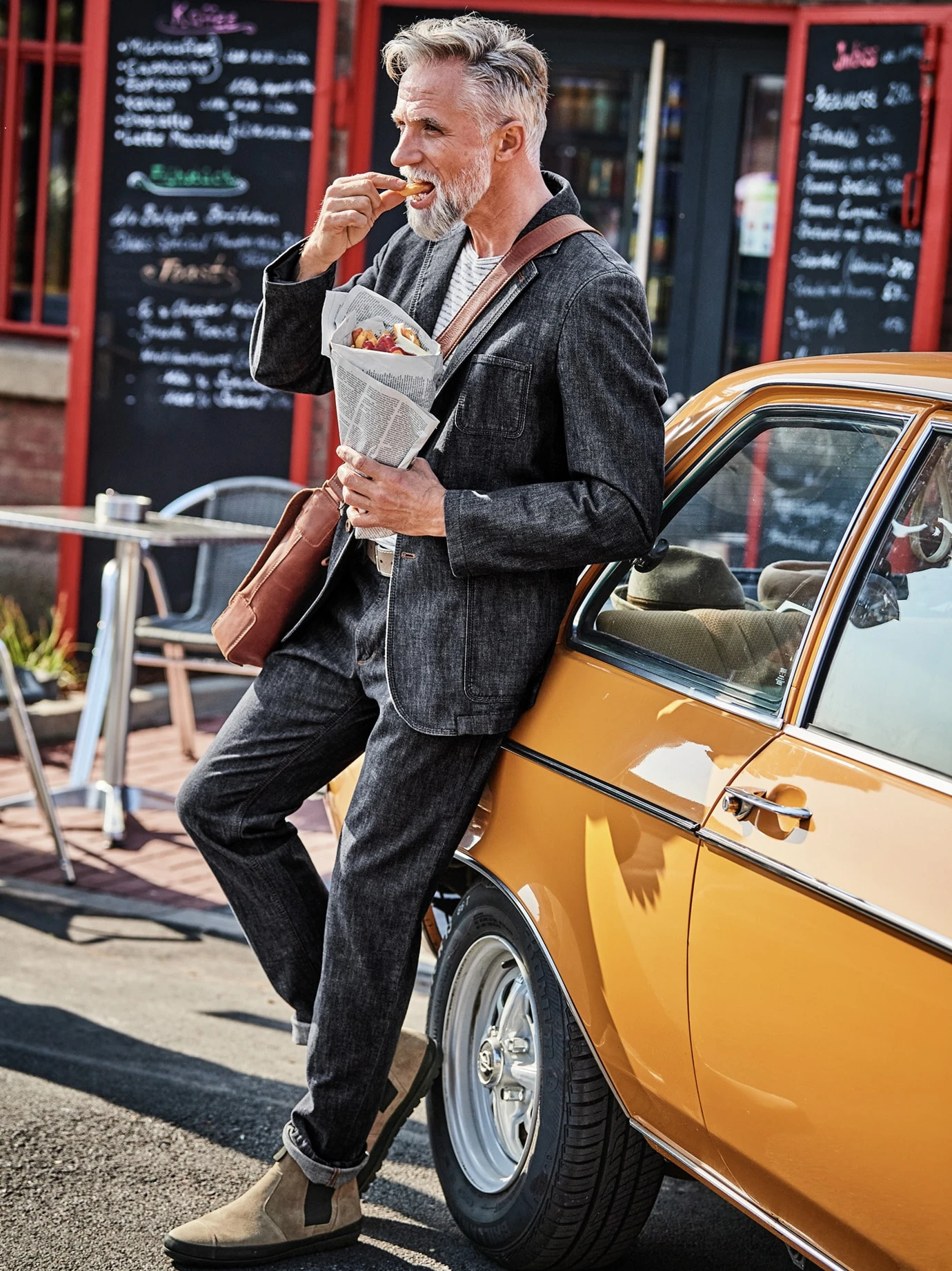 Bravo Olimpias! Wenn etwas Normales plötzlich subtil feiner ist, dann hatten meist Italiener ihre Hände im Spiel. So wie bei diesem Sakko, dessen Denim vom Weber Olimpias mit einem Schuss Lana – feiner Schurwolle – veredelt wurde. Effekt: charmanter, komfortabler, mit diesem typischen Italo-Flair. Nebeneffekt: Wolle wirkt temperaturausgleichend an warmen Tagen und kühlen Abenden. Der Sakko-Schnitt erscheint korrekt, durch den Denim-Look aber deutlich entspannter.
