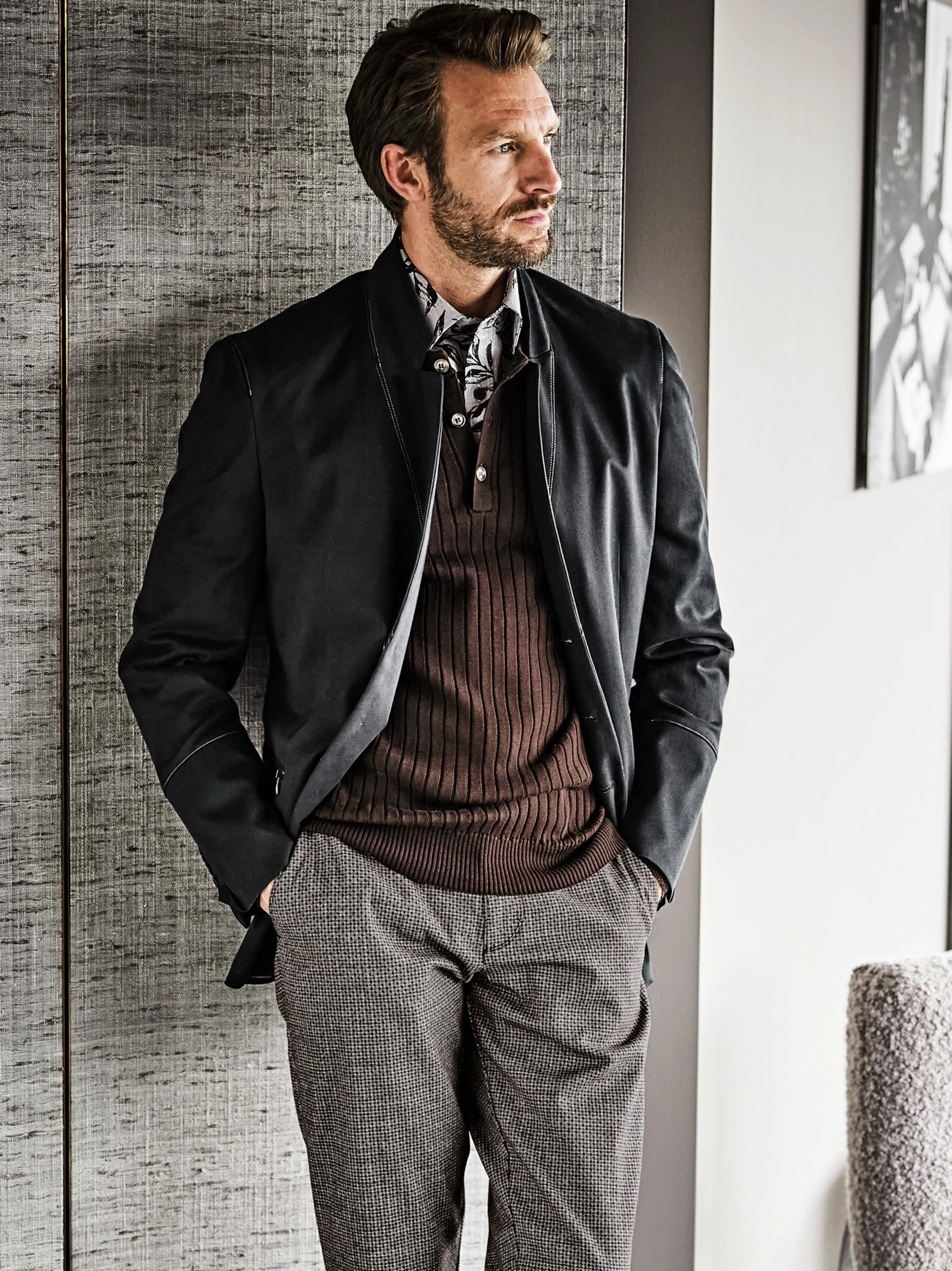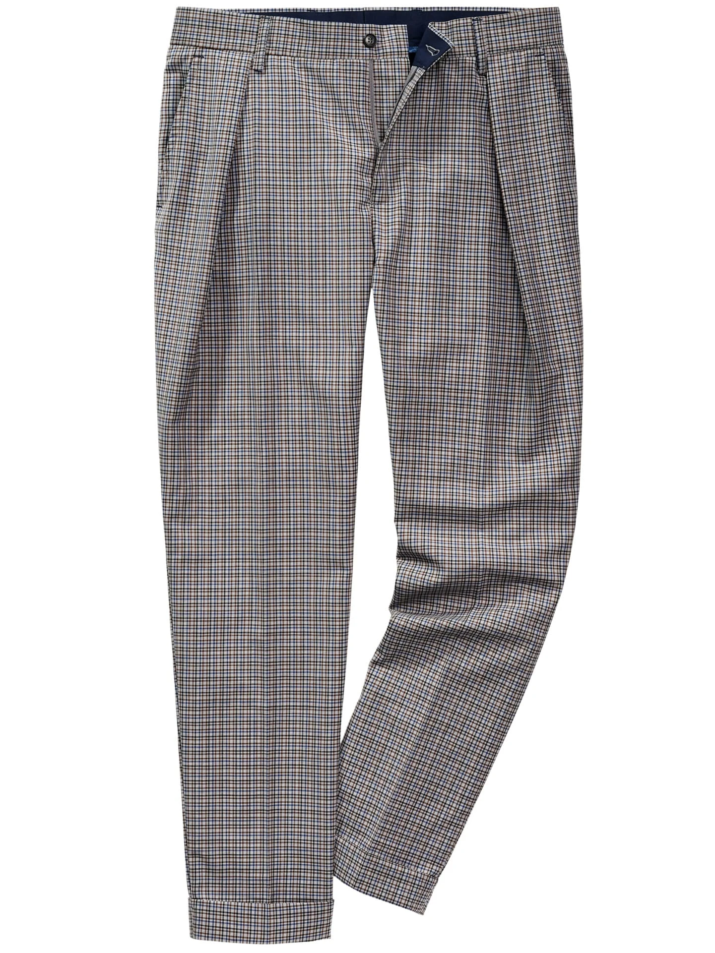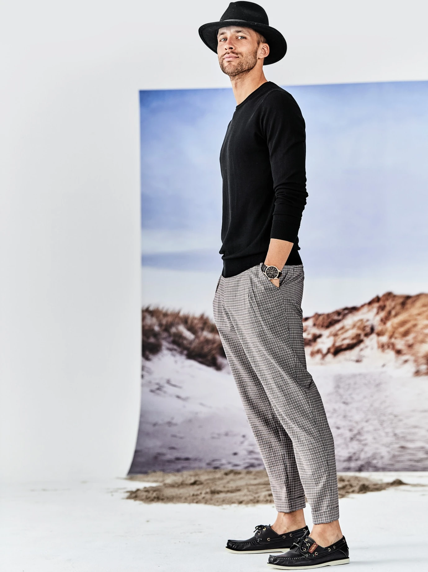 Ihre Falten machen den Reiz aus. Sie sind Blickfang und Faktor für die Bequemlichkeit. Die Hose sitzt locker auf den Hüften, wird zum Bein hin schmaler (Fußweite: 36 cm) und ist bereits auf die perfekte Länge (kurz oberhalb der Knöchel) gekrempelt. Kombinieren können Sie sie mit dem Oberteil-Querschnitt Ihres Kleiderschranks: vom lässigen T-Shirt bis zum korrekt gebügelten Hemd mit Sakko (alles gern schlank). Knitterarmer, naturelastisch gewebter Schurwollstoff, wie Sie ihn von Anzügen kennen. Temperaturausgleichend und damit perfekt, wenn es unerwartet warm wird.