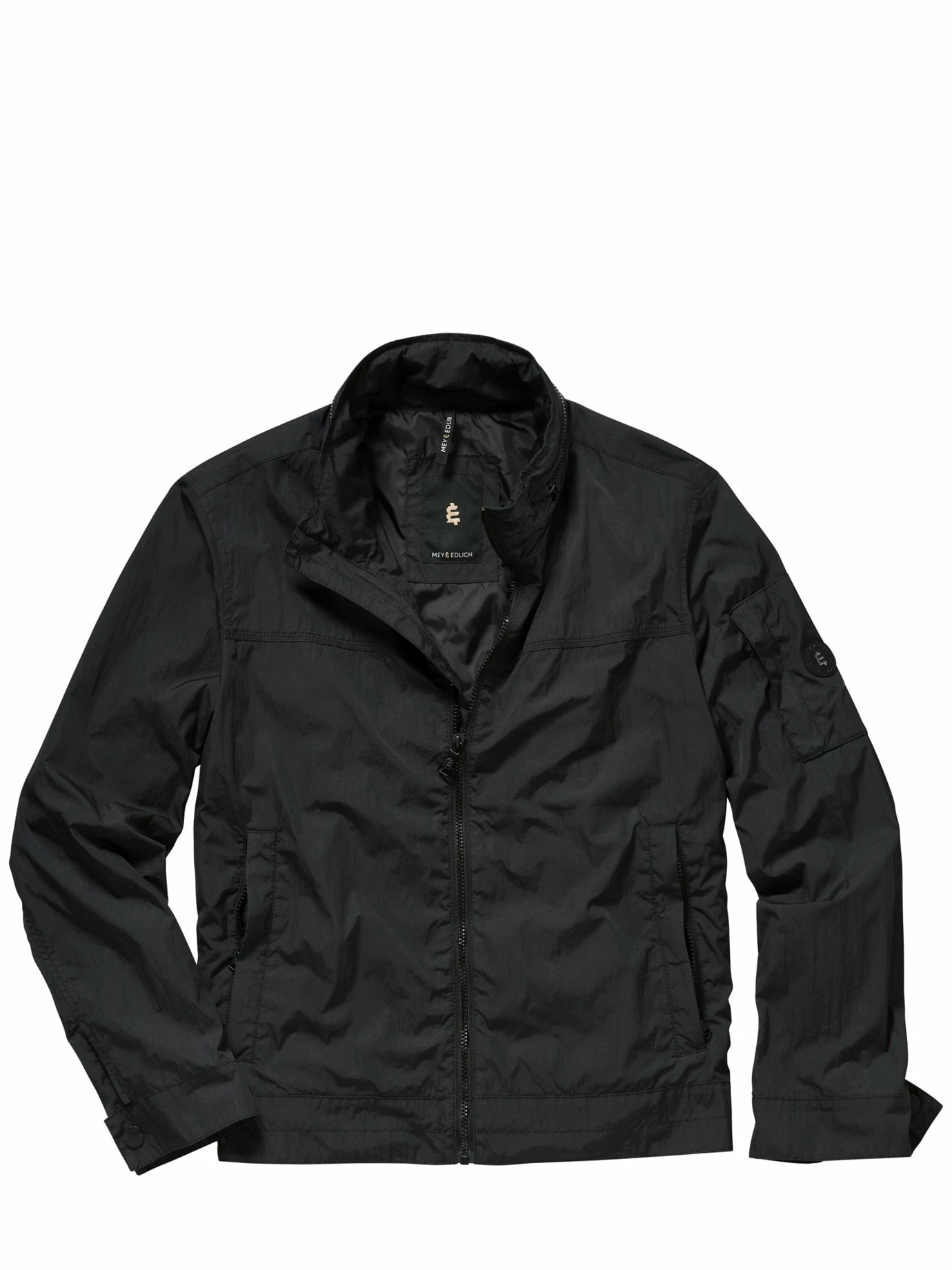 Verarbeitung: Halbfutter. Kapuze unterm Zipper im Kragen. Verstellbare Ärmel mit Sportmanschette. Markanter Reißverschluss. Aufnahmefähig mit zwei seitlichen Eingriffstaschen und einer Ärmeltasche, alle mit Zipper. Drei verschließbare Innentaschen, eine mit Klett, eine mit Zipper, eine mit Drücker fürs Handy. Regular Fit.