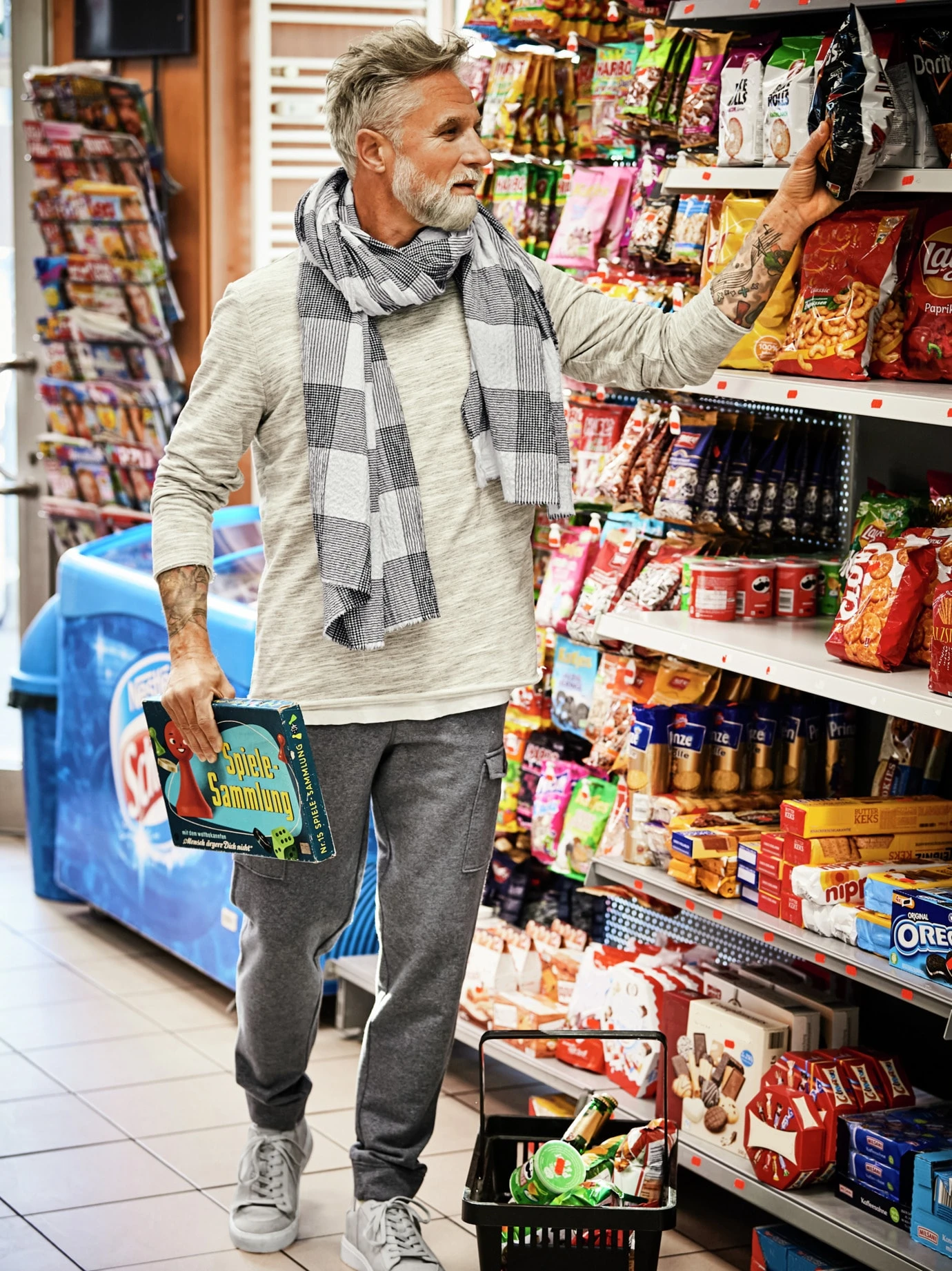 Kennt jede Ecke. Lässig, zeitgemäß und mit erstklassigem Sitz. Der Jogginganzug ist längst erwachsen geworden. Dafür trägt die Hose die Gene der männeraffinen Hose, der Cargo. Die seitlichen Taschen sind Outdoor-erprobt, der Rest ist hochwertiges Sportswear-Handwerk. Von der feinen Sorte, die seichte Baumwolle macht sich angenehm auf der Haut, der Anteil Hightech lässt sie gut ihre Form wahren. Die Bux sieht sogar ausreichend korrekt zum Overshirt samt Longsleeve aus. Liegt am Bein gut an, daher am besten zu Sneakern tragen, Boots gehen aber auch immer.