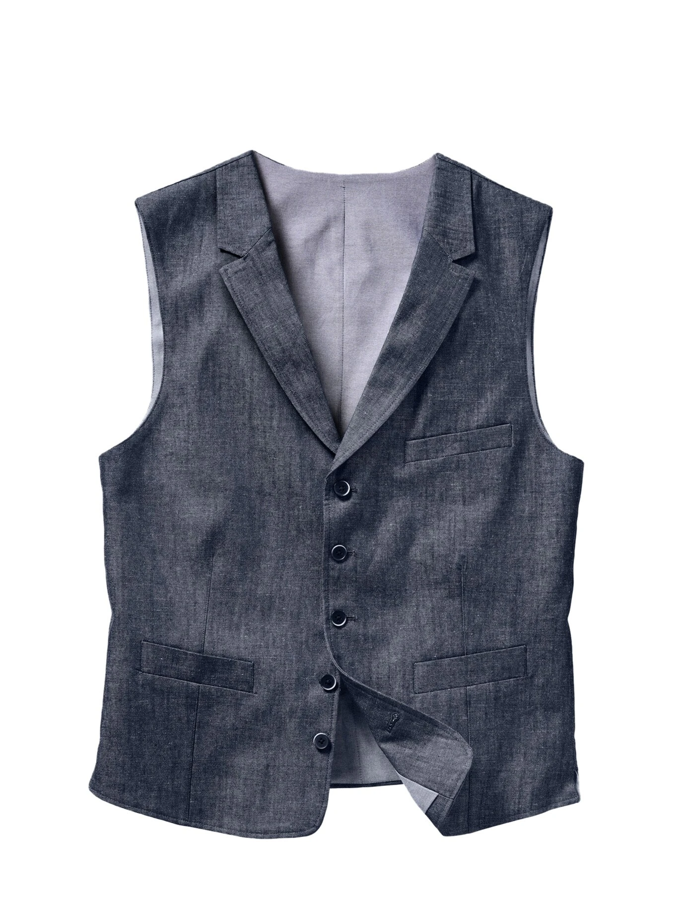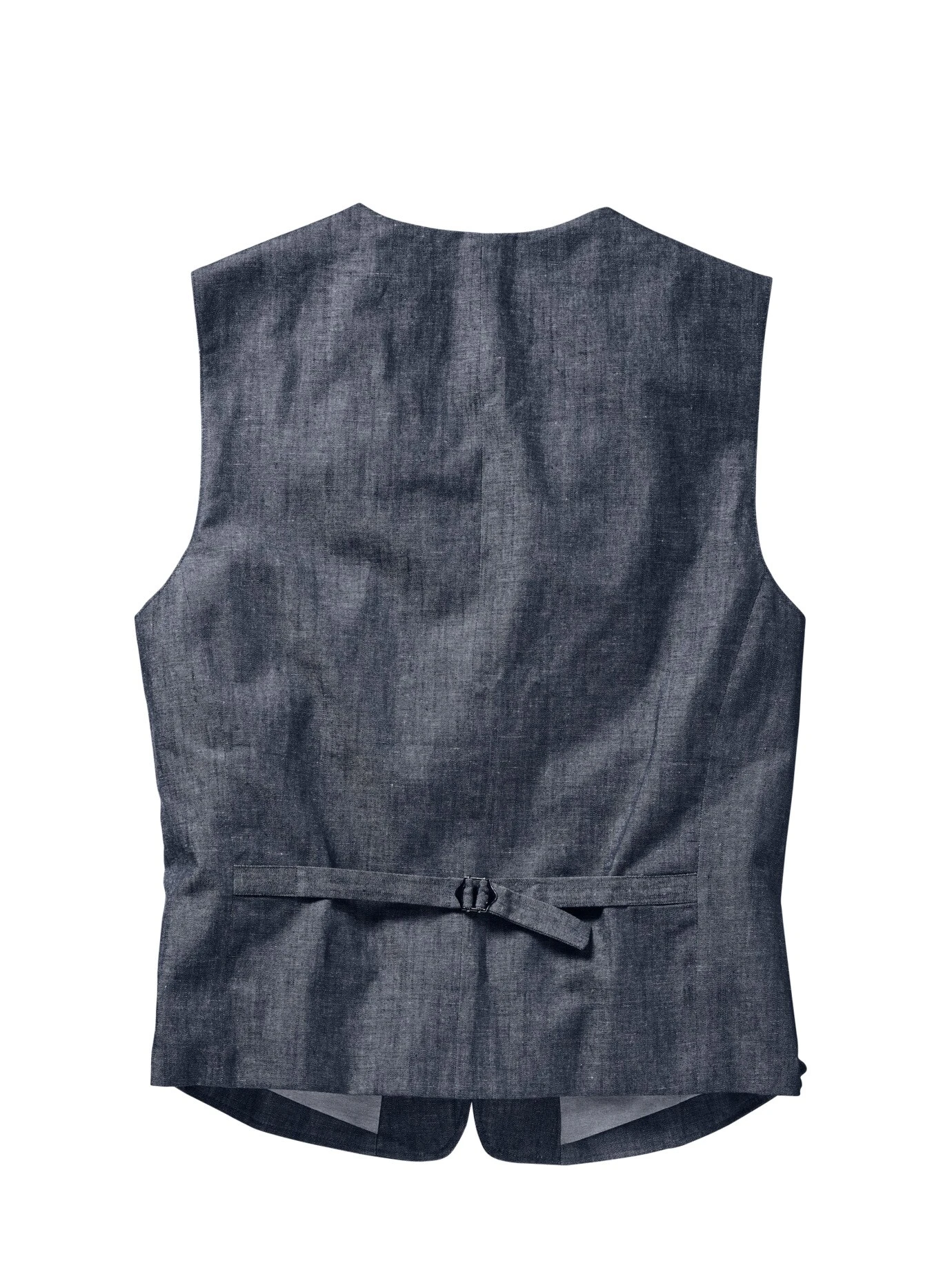Konkurrenz zur Jeansjacke. Angezogen kommt sie abgeklärt daher, stilistisch ist diese Weste aber um Längen erhabener. Dafür ist der typisch indigoblaue Denim verantwortlich. Und das grenzenlose Kombinationsspektrum – denn outfitmäßig und farblich passt eben alles: ob unterm Leinensakko mit Stehkragenhemd oder dank stoffgleichem Rücken solo zum Longshirt. Jeans wählen Sie eine Spur heller oder dunkler. Die Weste trägt sich leicht, ihre Mischung aus Baumwolle, knitterarmem Polyester, luftigem Leinen, einem Hauch Viskose und Elasthan macht sie sommerlich.