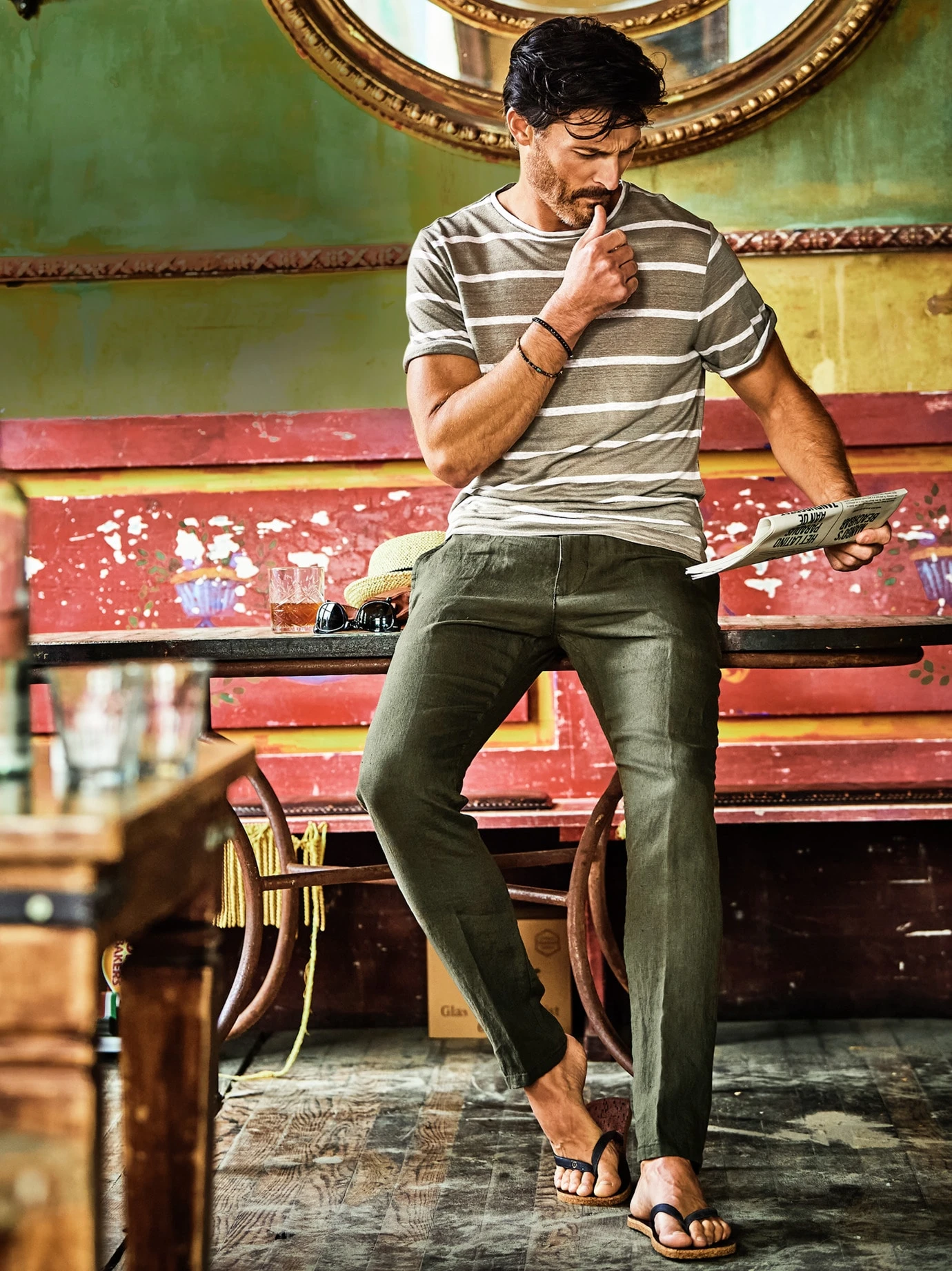 Entspannter Gesamteindruck, der zunimmt. Diese Hose ist komplett aus Leinen, dadurch kühlt sie bei Hitze sanft und gibt Feuchtigkeit einfach nach außen ab. Mit den Tragestunden wirft sie die typischen Knitter, die Luft noch stärker rollieren lassen. Getragen werden Sie sie kaum spüren, sie sitzt bequem, den Tunnelzug samt Bindeband kennen Sie von Joggwear. Shirt oder Polo und helle Sneakers dazu, fertig ist Ihr Sommeroutfit.