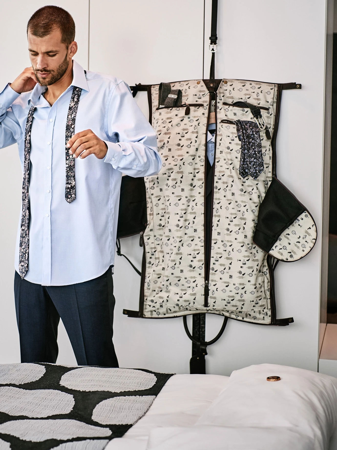 Die Reiselust Ernst Meys inspirierte zu diesem Weekender. Er selbst war seinerzeit, Ende des 19. Jahrhunderts, vermutlich noch mit Kofferschränken unterwegs, heute trüge er diese Ledertasche. Mit ihren 56 Litern Fassungsvolumen bietet sie Platz für ein ganzes Wochenende inklusive Outfitvielfalt. Und das Beste: Sie besitzt einen integrierten Kleidersack, in dem Sie bequem Anzug und Hemden unterbringen. Mit großem Hauptfach und weiteren drei Reißverschluss- und zwei Einschubfächern innen. Außen pro Seite eine Tasche für Papiere und eine Vorrichtung, um sie an einem Trolley zu arretieren. Mit Tragegriff und abnehmbarem Schultergurt. Das Futter ist mit einer original Mey & Edlich-Werbeanzeige vergangener Zeit bedruckt. Maße: 56 x 37 x 27 cm (B x H x T).