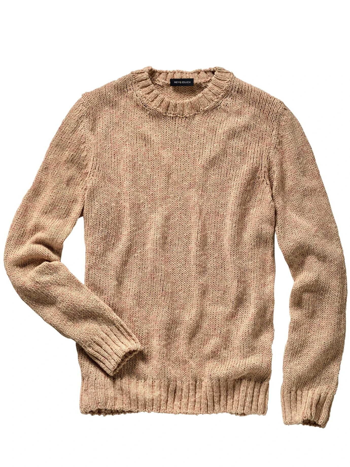 Was Dickes für den Sommer. Grob und locker gestrickt, sanft massierende Schlaufen, die der Haut ausnehmend gut gefallen. Ein Pullover, der an der Düne so zuhause ist wie in der Sunsetbar. Mit nur drei Maschen pro Inch wirkt er so luftig, dass Sie den Sommerwind auf der Haut spüren könnten. Sein üppiger Leinenanteil sorgt zusätzlich für Kühlung und verleiht diese typische Griffigkeit, die sich hier im Mix mit Seide unverschämt edel anfühlt. Knittern wird er eher nicht. Der etwas höhere Kragen lässt Sie auch an lauen Abenden angezogen wirken.