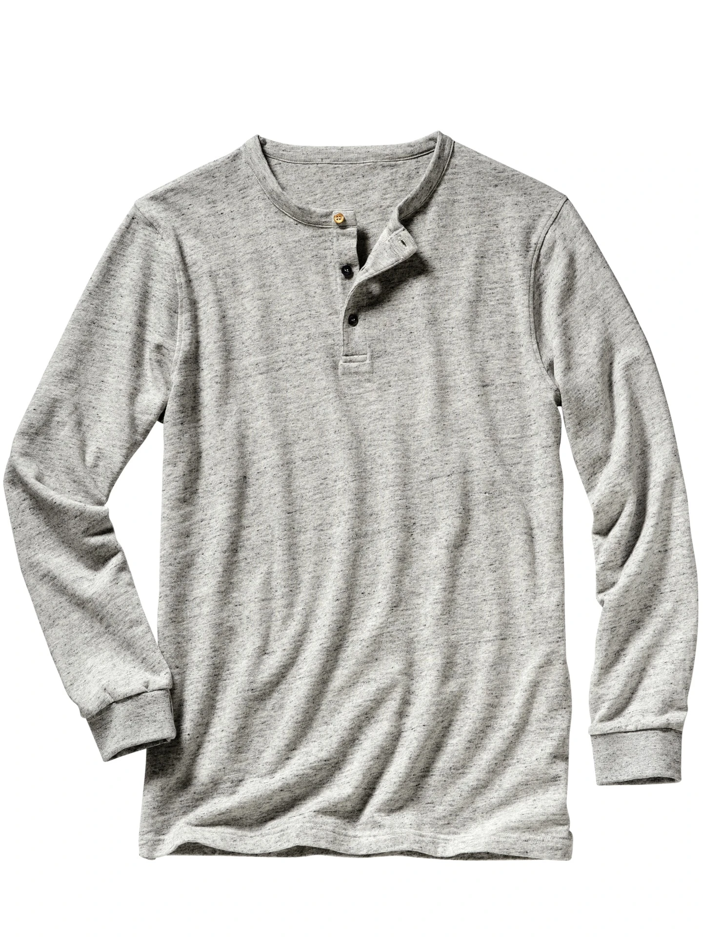 Dieses Shirt erteilt der Nullfehlerwelt eine Absage. Die Farbe ist fleckig-scheckig, die Struktur unregelmäßig, kein Knopf passt zum anderen. Der Wohlfühleffekt hingegen ist einmalig. In Portugal aus einem Baumwoll-/Modal-Flammgarn gefertigt, das dickere und dünnere Knötchen im Material hat. Diese Machart wirkt sich positiv auf das Tragegefühl aus, weil der Stoff die Haut sanft massiert, statt an ihr festzukleben. Dank des Anteils Modal besonders weich.
