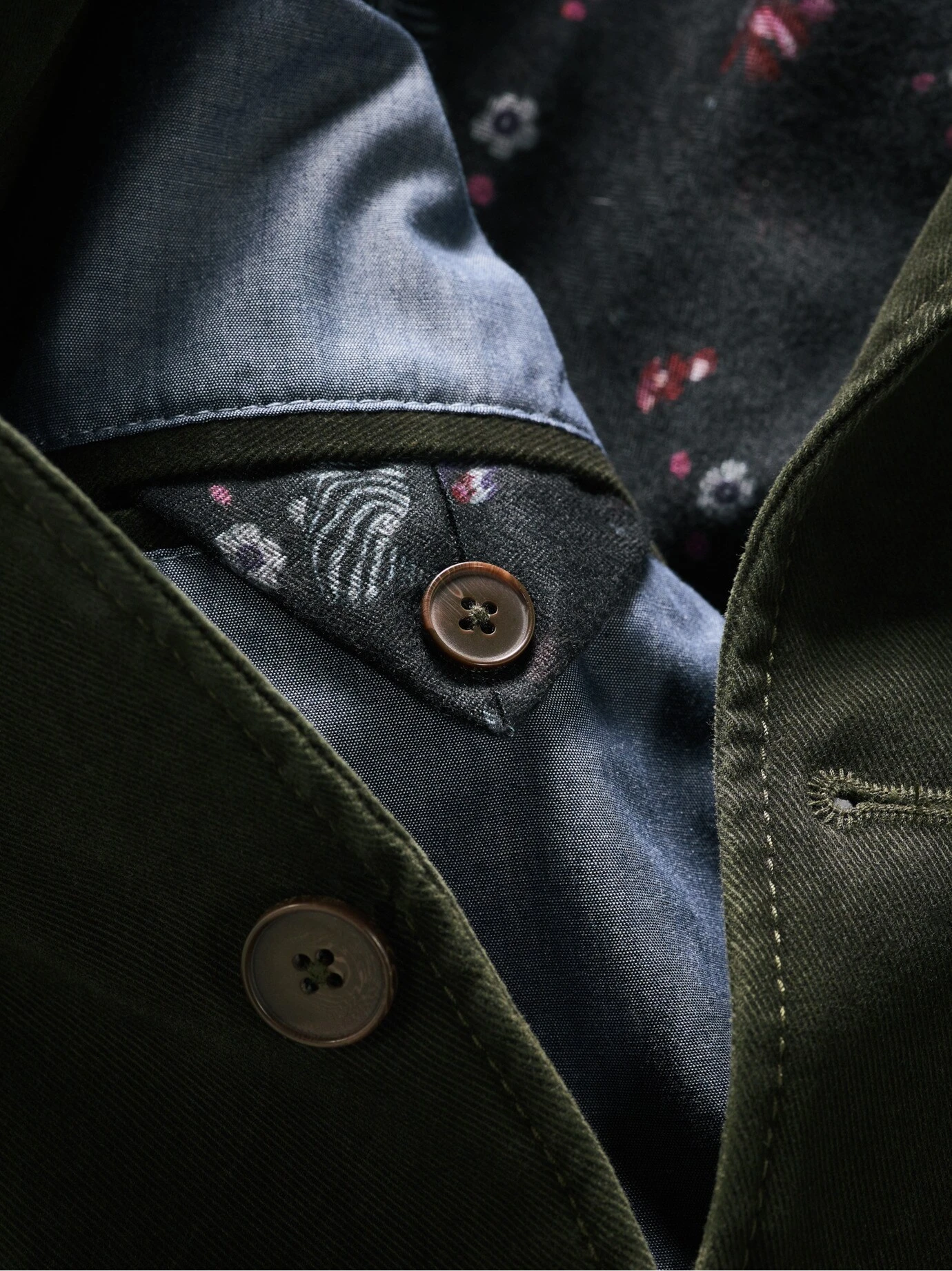 Material: Obermaterial: 97 % Baumwolle, 3 % Elasthan. Schmetterlingsfutter: 65 % Polyester, 35 % Baumwolle. Ärmelfutter: 100 % Polyester. Waschmaschinenfest.