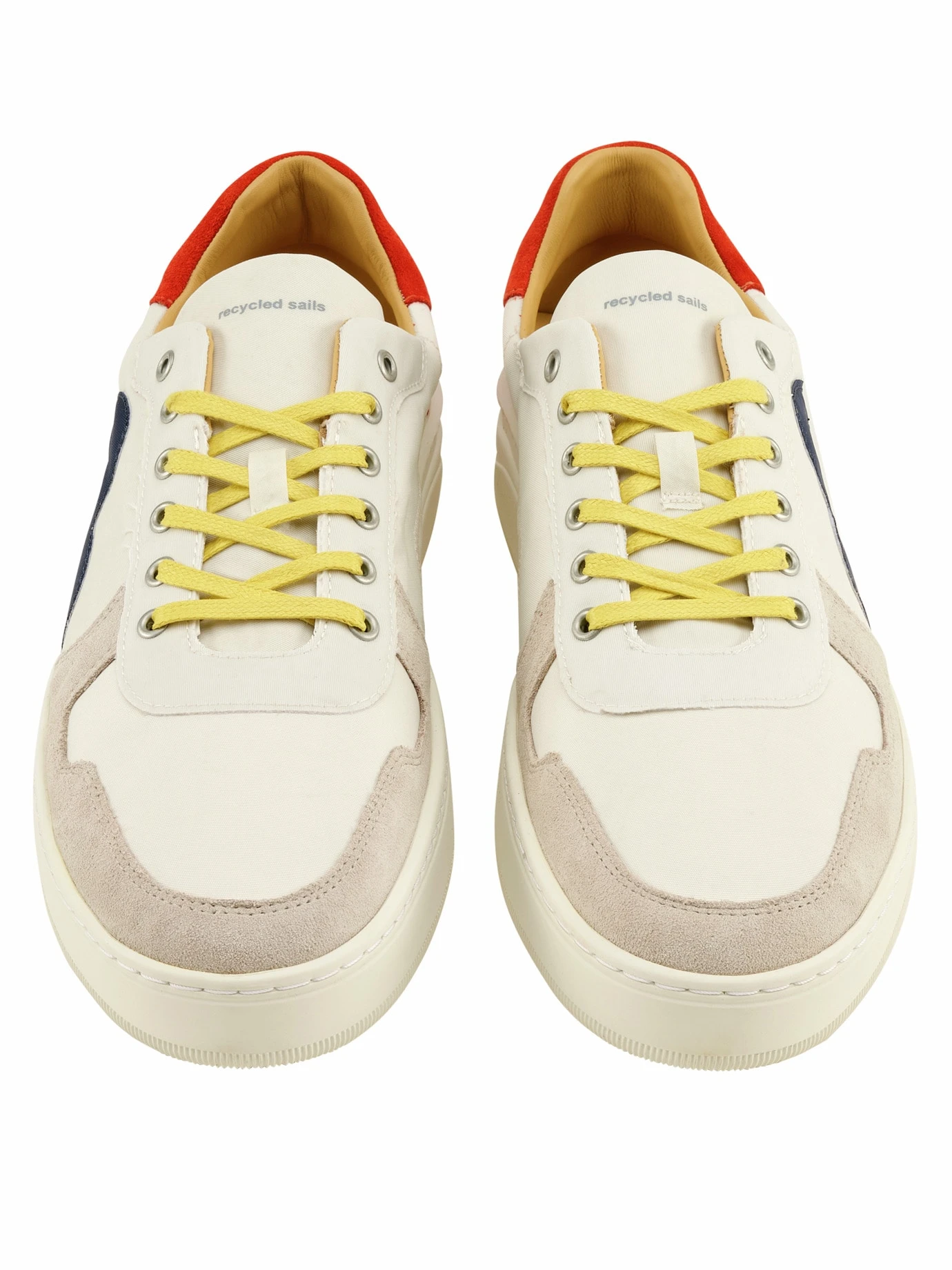 Pure Windstärke. Ein großer Teil dieser Sneakers war bis vor kurzem noch auf Plattbodenschiffen und Holzbooten im Einsatz. Als Segel trotzte das Material in den Wattenmeeren der Nordsee und im Ärmelkanal dem Wind, der Gischt und der salzigen Meeresluft. Der Rest stammt aus geretteten Rettungswesten (8), frischem Naturkautschuk (Laufsohle) und pflanzlich gegerbtem Rindleder (aus Europa). Klare Kante für die Umwelt! Was auch immer Sie im Sturm erobern wollen, das sind die passenden Sneakers dazu.