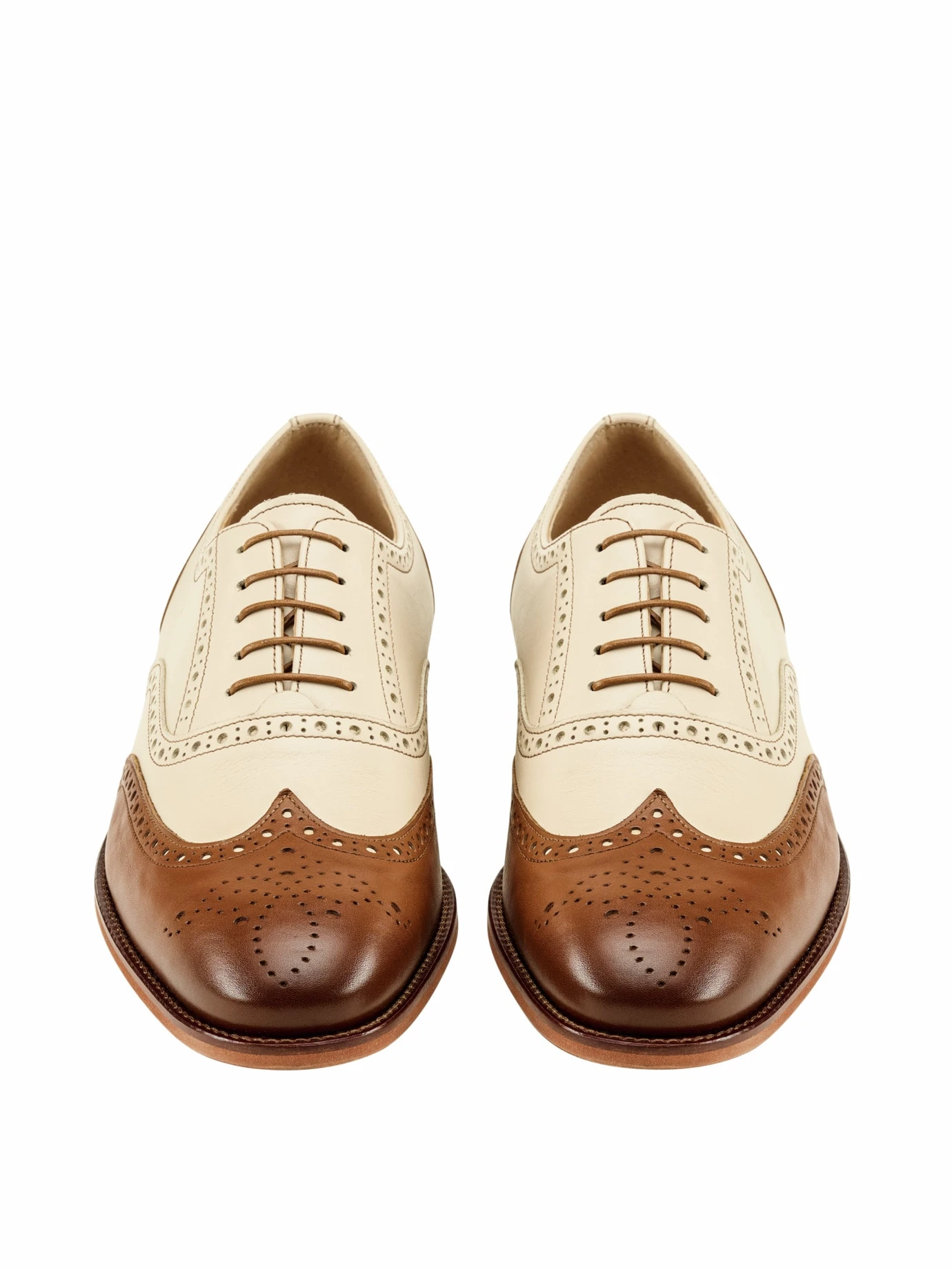Darin steckt vor hundert Jahren ein Bösewicht. Eigentlich dienen die Gamaschen als Schutz des Schuhwerks, um gegen Kälte und die Widrigkeiten der Straße gewappnet zu sein. Heute werden sie nicht mehr drangeklipst und pfeifen auch auf Nadelstreifenanzug. Der Budapester trägt durch die Zweifarbigkeit den Gamaschen-Look, ist aber in Wahrheit aus italienischem Kalbleder, damit sich darin gut Geschäfte abwickeln lassen und Ihre Füße dauerhaft frisch bleiben. Die Farbzusammenstellung versprüht Retro-Charme und wirkt besonders zu gestreiften Hosenbeinen (nur Mut) aber auch zu Jeans.