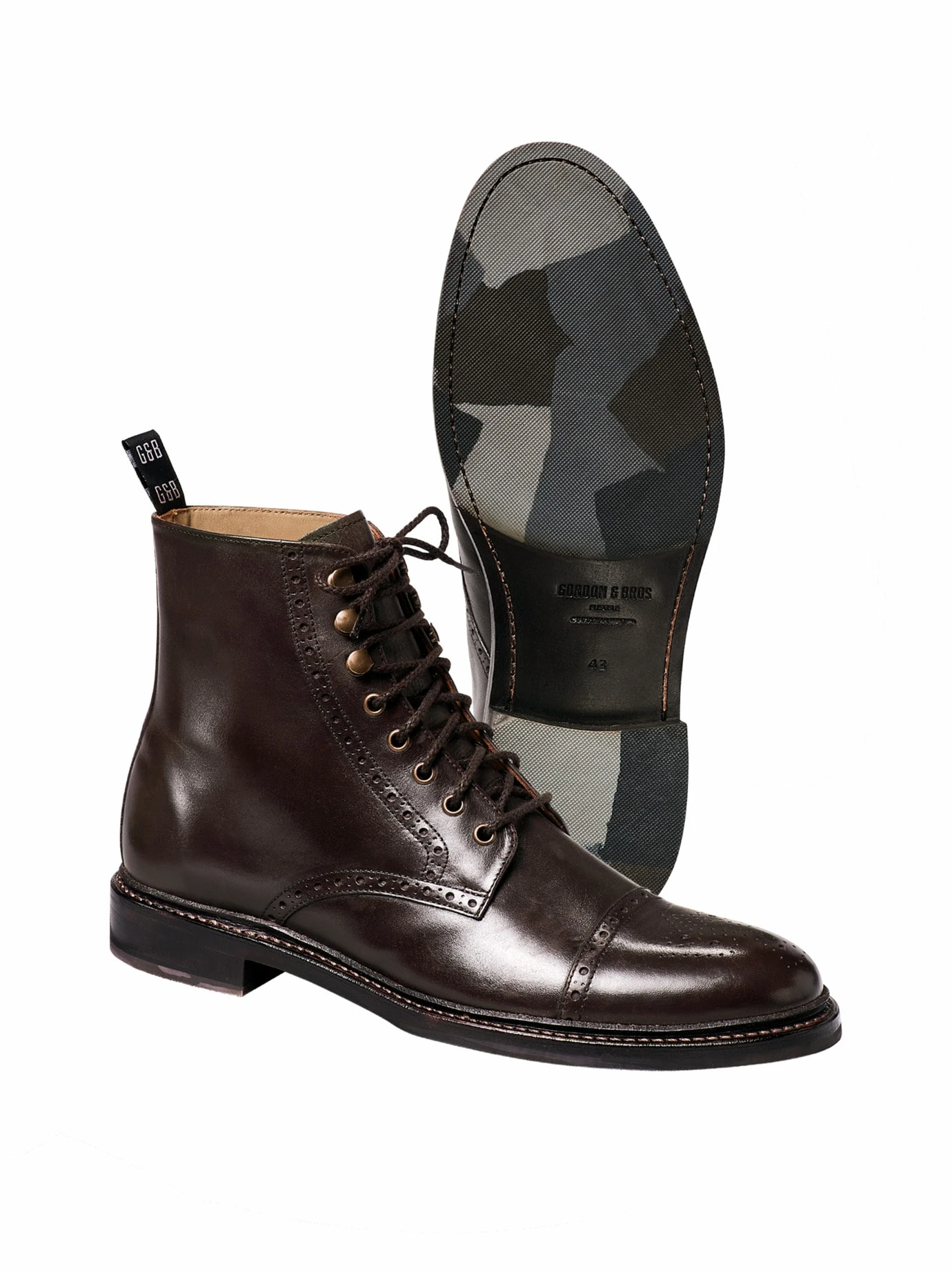 Beherrscht Terrain. Bleibt entspannt. Gordon & Bros denkt Schuhe noch in der Machart, wie sie früher Standard waren und heute schwer zu finden sind. Gearbeitet aus robustem Rindleder, das bei guter Pflege länger als eine Generation Schuhe hält. Rindleder auch innen, damit Ihr Fuß gut atmen kann. Optisch an den klassischen Budapester angelehnt und kompatibel mit Jeans oder Anzug.