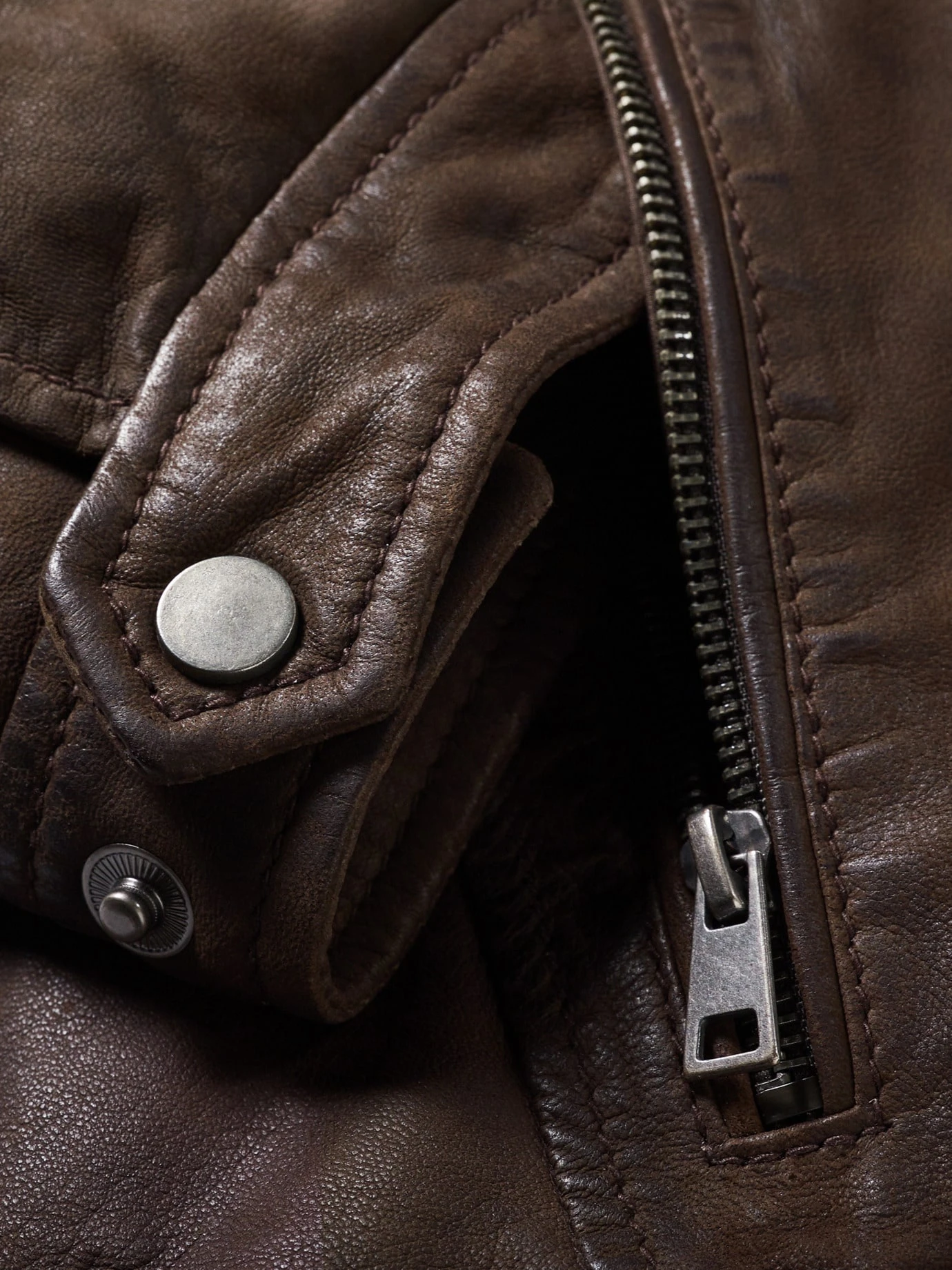 Spontan, sympathisch, unbedarft. Es ist die Jacke für Roadster-Touren, für Abende mit den Jungs, für den Trip auf dem Hausboot – eine Jacke für Männer. Sie ist durch ihr leicht angeschliffenes Lammleder handschuhweich; ihre farblichen Schattierungen fallen bei jedem Stück anders aus, sodass eine Beschreibung ihrem Ansatz nicht gerecht werden würde. Dafür ist der Ton aber so ausgewogen, dass die Jacke in ihrer Kombination nahezu alles zulässt (vermutlich werden Sie sie aber fast nur zu Jeans und Shirt tragen). Am coolsten ist, klar, der angedeutete Sweat-Hoodie – der heraustrennbar und als Einsatz gearbeitet ist.