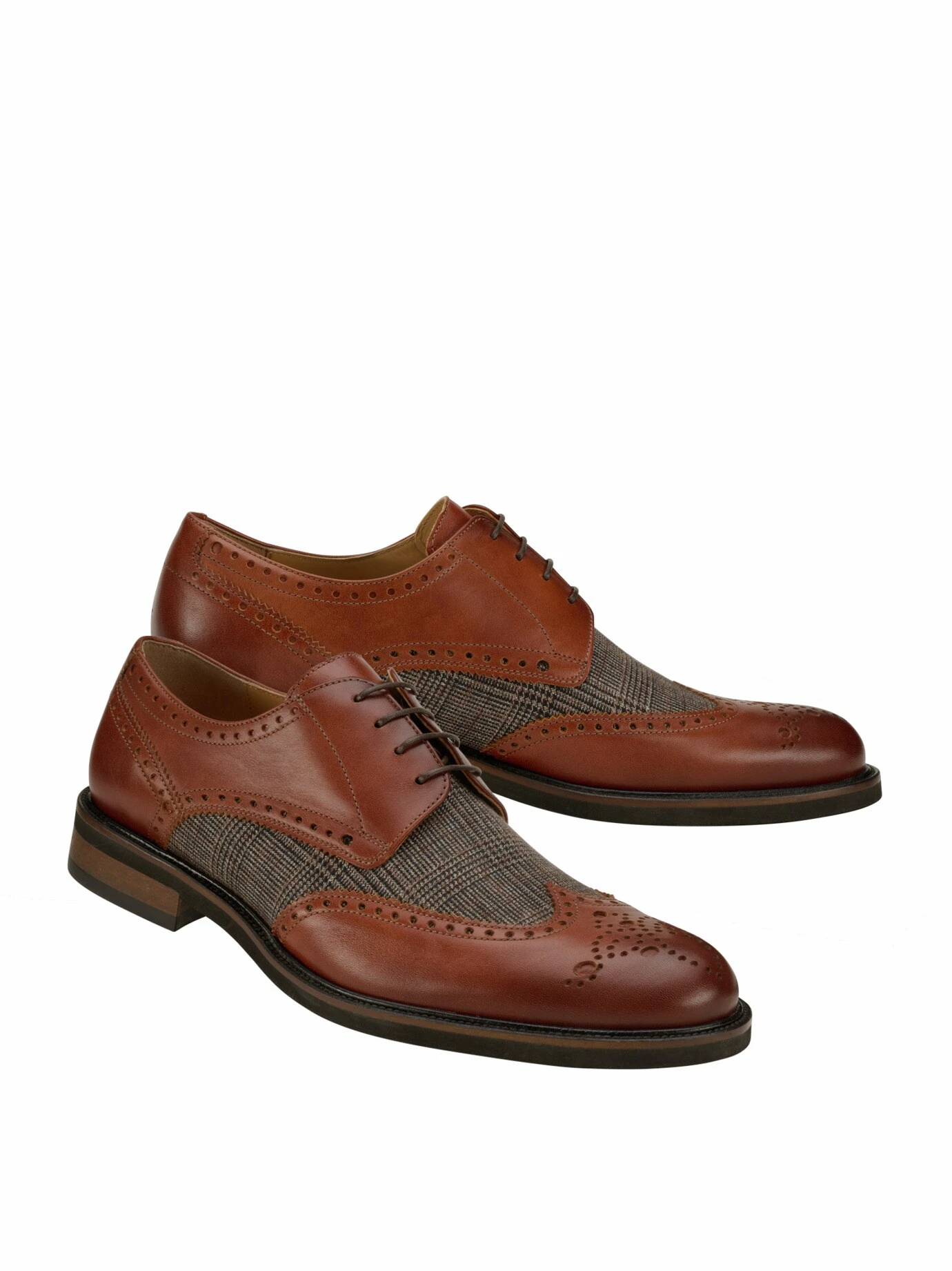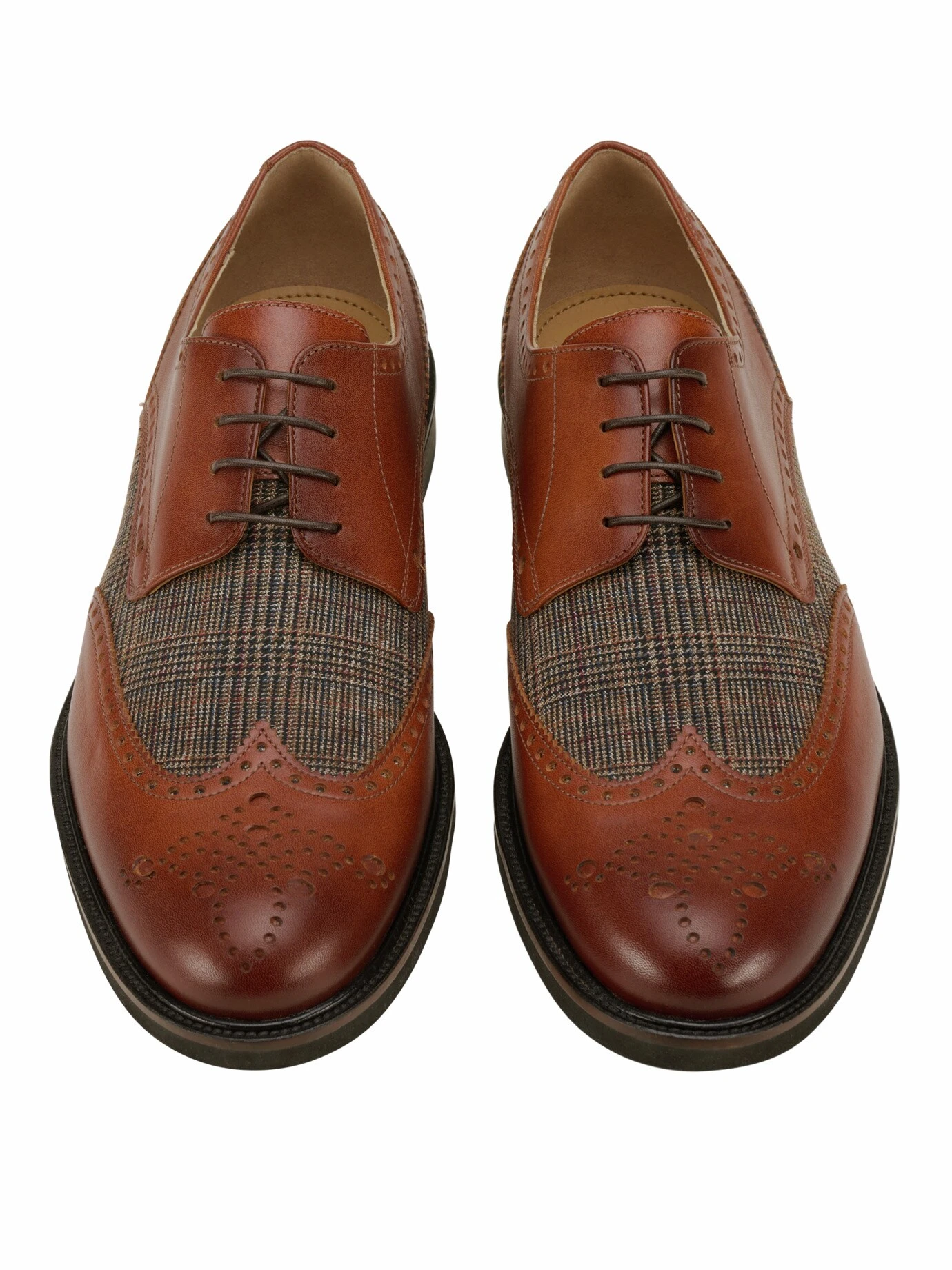 Modernisierter Klassiker. Zierlochung und Flügelkappe – der Budapester. Mit dem Trend derber Schuhe meldet sich der Gangsterschuh der 1930er-Jahre zurück. Neu ist die Kombination: Die Einsätze des klassischen Karos verleihen ihm Heritage-Gefühl. Das Kalbleder stammt aus Italien, ist besonders strapazierfähig und sonst nur bei den großen Luxusmarken zu finden. Natürlich auch innen fürs bessere Fußklima. Besonders gut macht er sich zu schlanken Businesshosen oder engen Jeans, dazu ein Hemd oder Longpolo.