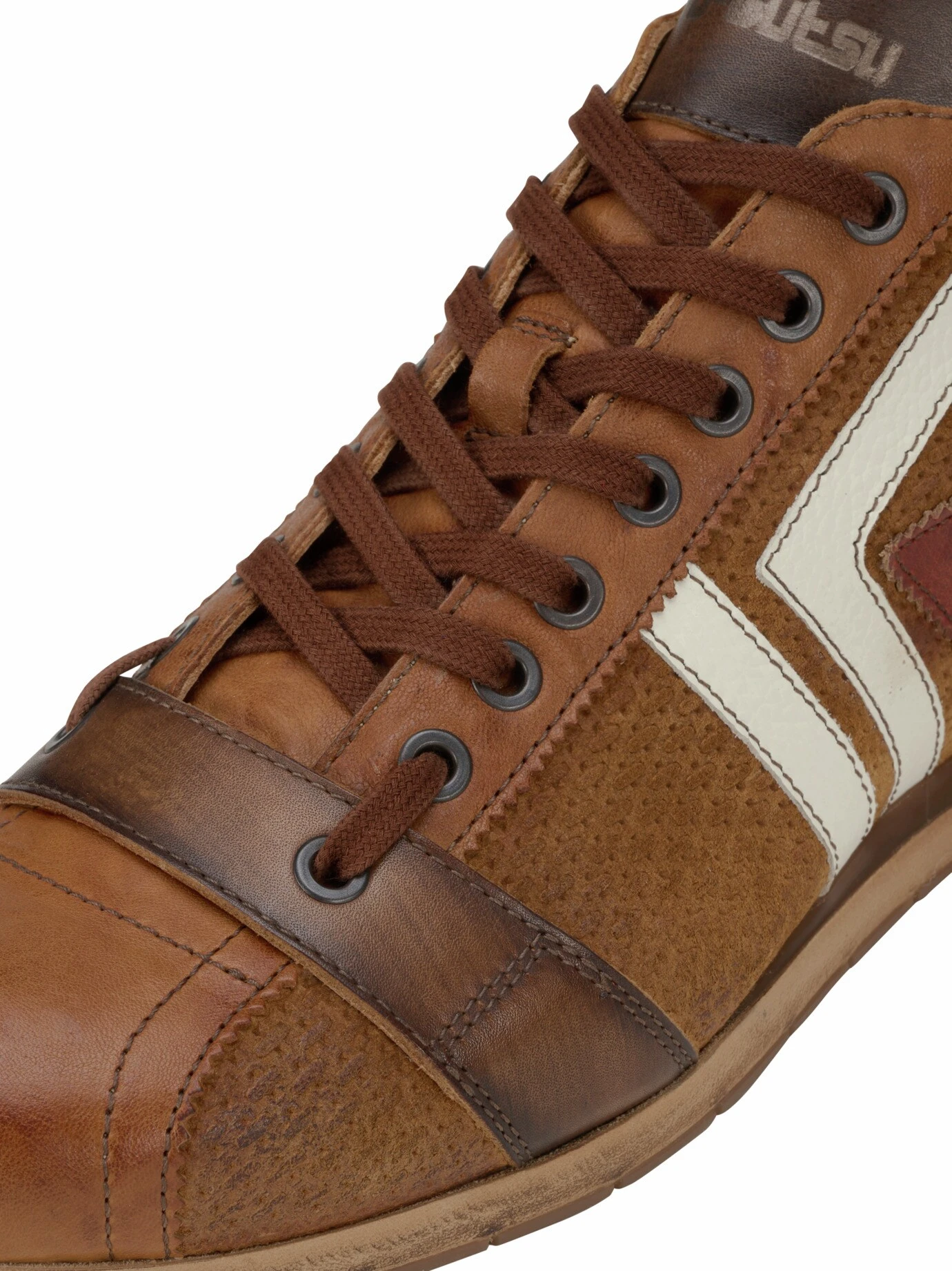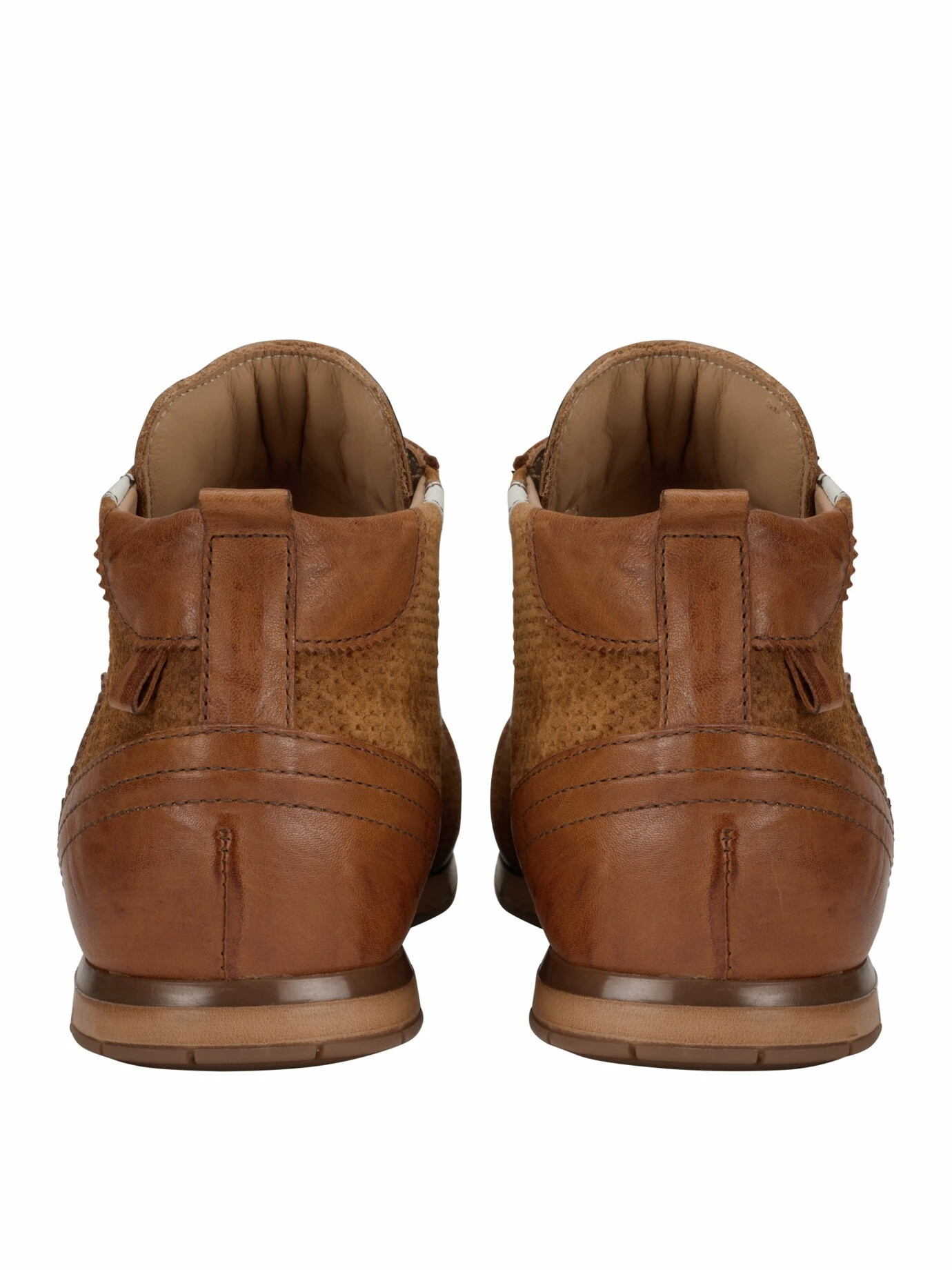 Material: Obermaterial: Ziegenleder, Ziegenrauleder. Futter: Kalbleder. Herausnehmbare Polyesterdecksohle. Haltbar montierte Gummilaufsohle (thermoplastisch). Lederpflege frischt auf.