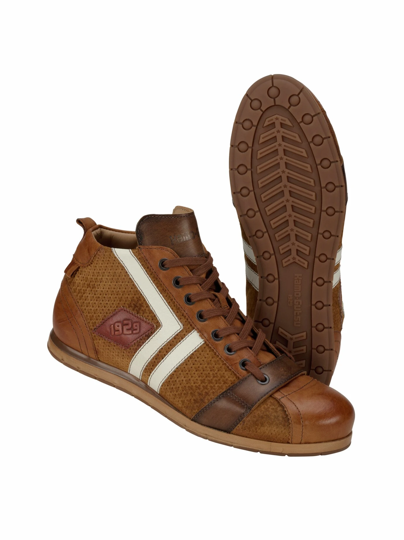 Im Stile würdevoller Fußballzeremonien. Inspiriert vom kemaria, dem japanischen Spiel, bei dem der Ball lange in der Luft gehalten wird, ist dieser Schuh. Vom Grundprinzip erinnert er an die Turnschuhe der 1920er-Jahre, mit erhöhter Schnürung (der quer umlaufende Lederriemen hält sie an Ort und Stelle), schlankem Design und flacher Sohle. Gefertigt in der Region Italiens, die die geheime Schatzkammer für hochwertiges Schuhwerk ist, den italienischen Marken. Das Obermaterial ist weiches Ziegenleder, das Futter aus Kalbleder macht ihn robust.