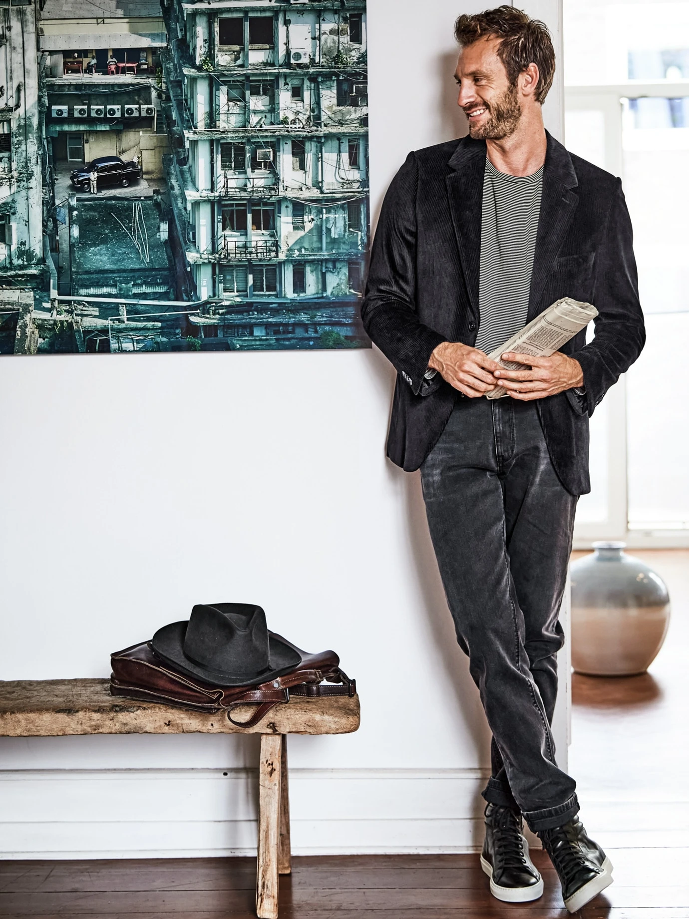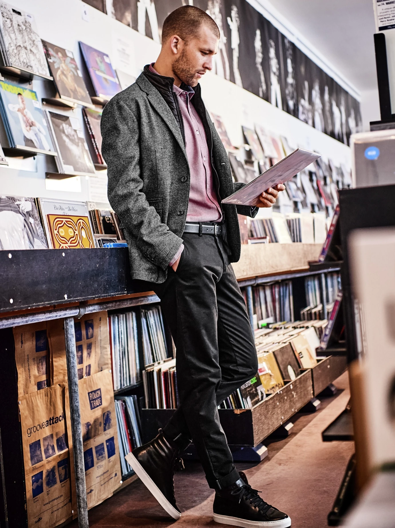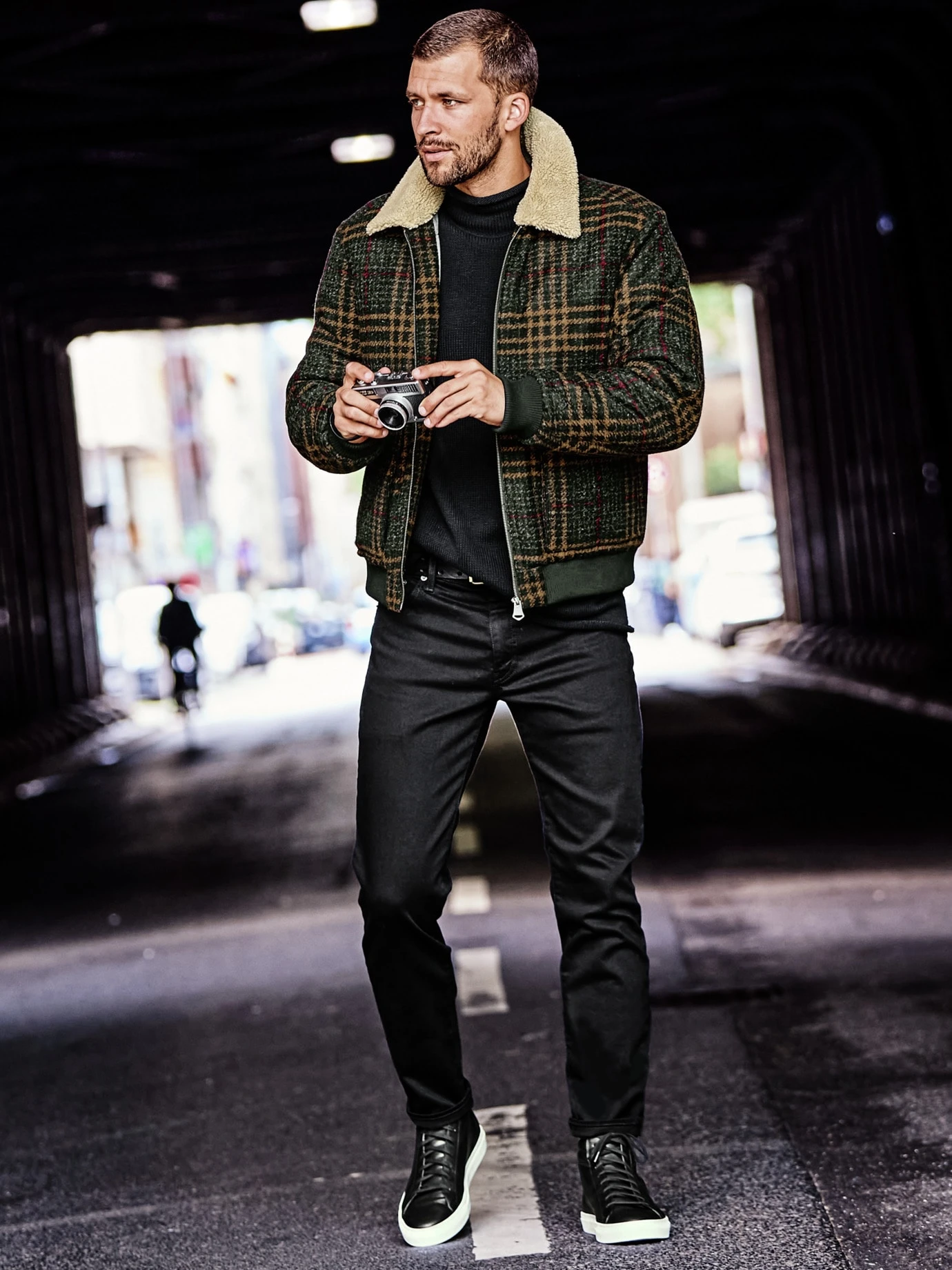 Wenn der herkömmliche Sneaker zu wenig ist, dann kommt die hohe Variante an den Fuß. Der hohe Schaft umschließt weich den Knöchel, gibt Stabilität und sieht selbst zu gekrempelten Hosen aus. Das Leder ist ungeahnt weich, der Schuh ist auch dank seines geringen Gewichts (500 g) viel angenehmer zu tragen als viele seiner Konkurrenten. Starker Kontrast: schwarzes Kalbleder zu weißer Sohle. Auch das Futter ist aus Kalbleder, was bei schnell schwitzenden Füßen besser ist als das oft übliche Schweinsleder.