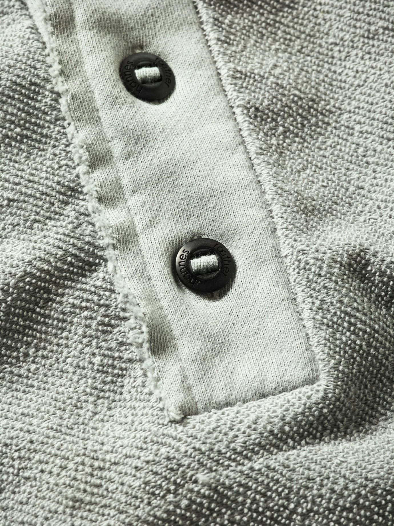 Streicht alles weitere. Heavy Sweat. Sonst nichts. Der Stoff ist dick und angeraut, schwer (der Hoodie wiegt 880 Gramm) und wärmend. Bei stabilem Wetter ersetzt er die Jacke. Der Designer hannes roether krempelt zusätzlich den portugiesischen Stoff nach außen und setzt die 6-Knopf-Leiste fein säuberlich mit der glatten Seite ein. Verleiht Substanz. Weitere Zutaten: die offenen Kanten an Kapuze und Saum, die XXL-Kängurutasche trägt Hände und Wertvolles, für Uhrenträger mit knöpfbarem Ärmelschlitz, die Teilungsnähte im Rücken verschaffen breites Kreuz.