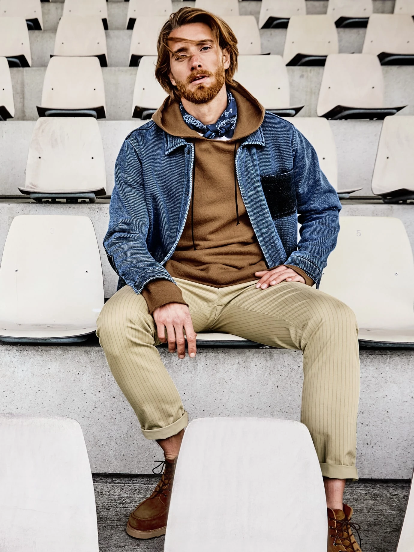 Kunst auf einer Größe von 50 x 50 cm. Jedes dieser Tücher ist von Hand bemalt: Das auffallende Muster wird mit heißem Wachs aufgebracht, das Tuch anschließend in eine Wanne voll Indigo getränkt – bis zu zwanzig Mal. Das passiert alles so individuell, dass am Ende jedes Tuch anders aussieht. Seinen natürlich verblassten Charakter erhält es mit der Zeit, mit etwas Sonne, Salzwasser und jeder Wäsche.
