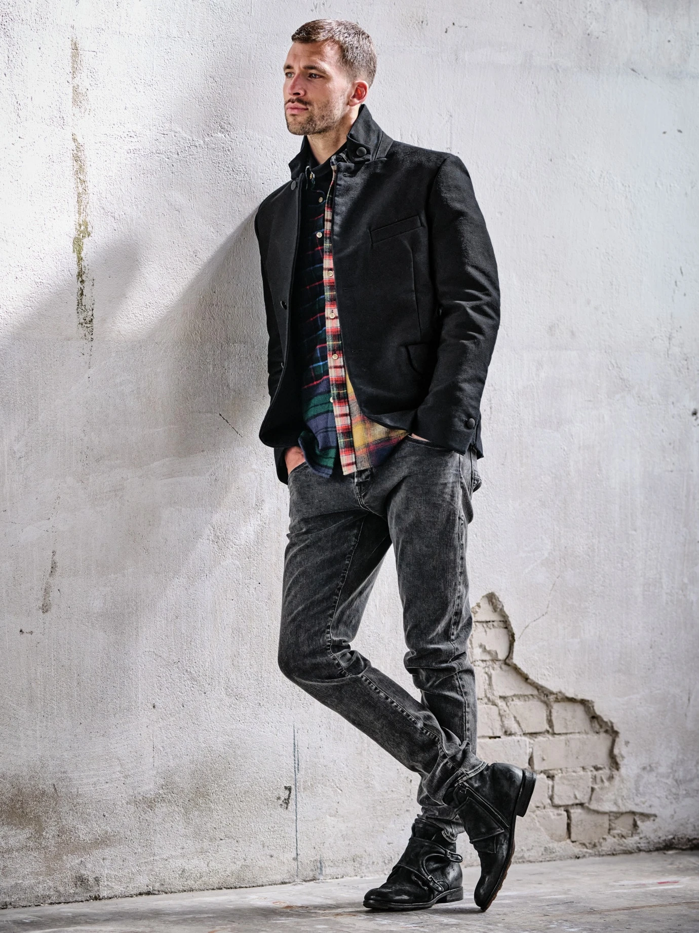 Vielseitig wie ihr Name. „Trade“, englisch für Handel, Gewerbe, aber auch Handwerk. Und so unterschiedlich die Anforderungen an eine gute Jeans in diesen verschiedenen Bereichen sind, so universell ist diese Jeans einsetzbar. Sehr moderner, vor allem an Bein- und Fußweite schlanker Fit, mit willkommenem Anteil Elasthan. Auffällige, aber nicht zu ausgefallene Waschung, die durch Sakko, weißes Hemd und Oxfords bürotauglich wird. Zu Berufen, in denen hart zugepackt wird, passt sie eh.