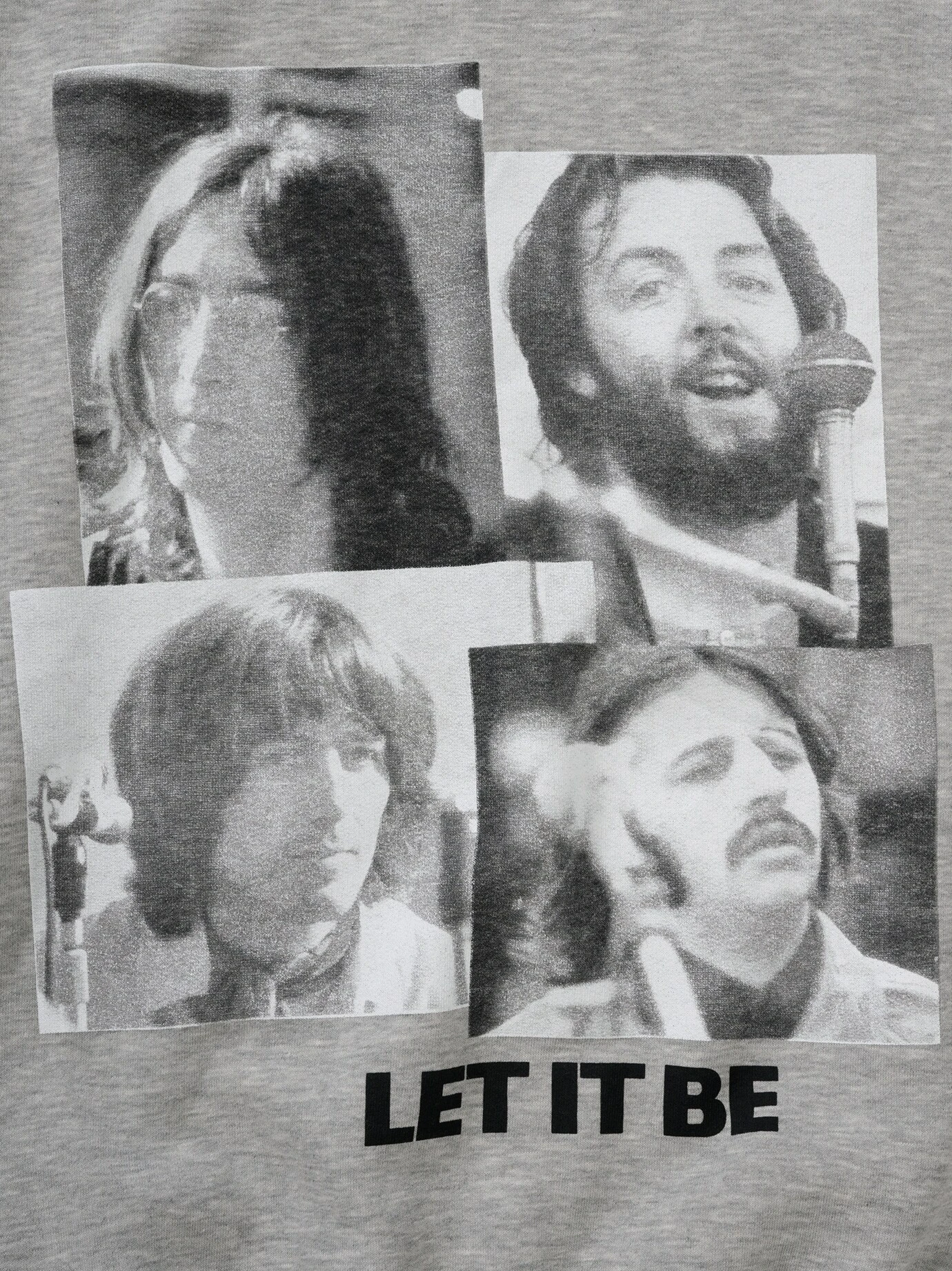 Die Zeile für Pauls Mutter. In einem Interview gab Paul später an, dass seine Mutter ihm in einem Traum begegnet sei und ihm über die Diskrepanzen in der Band gesagt hatte: Let it be. 12 Jahre nach der Veröffentlichung sagt John über den Song, es wäre nicht sein Song gewesen. Der Titel wurde ihre letzte A-Single, in getrennten Portraits finden hier die vier britischen Legenden noch einem auf dem Sweatshirt zusammen. Bedruckt auf einen French Terry-Sweat, der etwas fester ist.