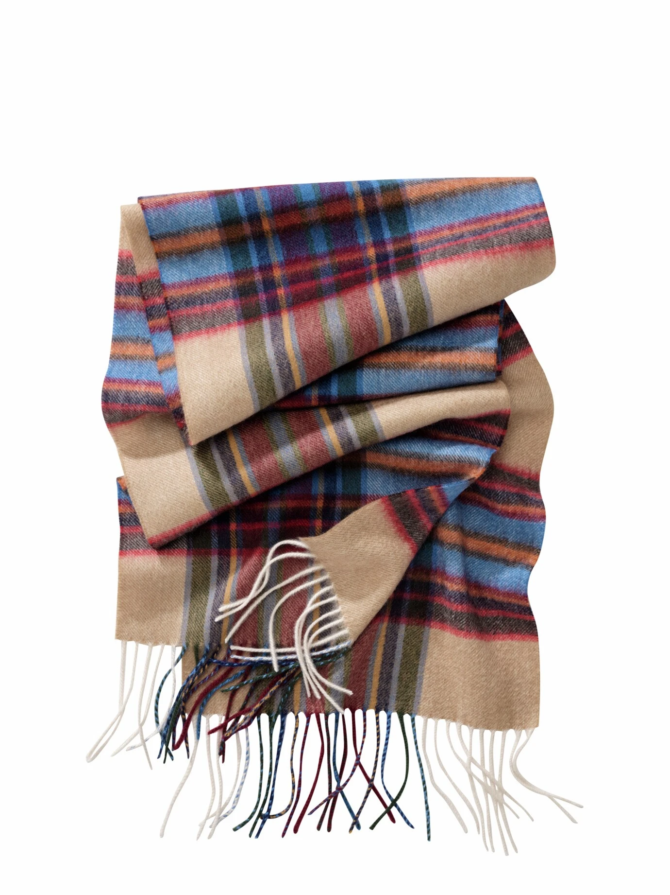 Dem Punk sei Dank. Denn seine Bewegung hat maßgeblich Anfang der Siebziger in England dafür gesorgt, dass das Tragen des ursprünglich royalen Tartans nicht mehr nur der königlichen Familie oblag. Seitdem führt das „klassische“ Karo ein kreatives, gern immer noch luxuriöses Eigenleben – hier auf einem Schal aus purem Kaschmir.