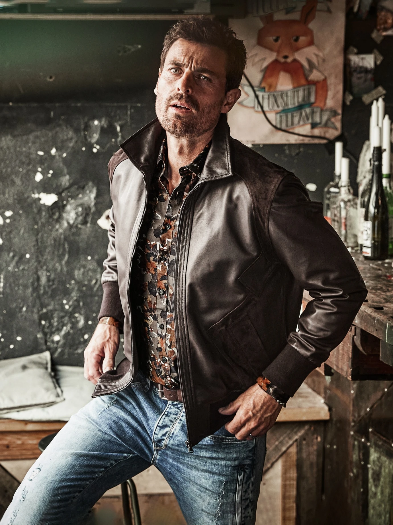 Rebel Without a Cause. Ein Stück Unangepasstheit haftet dem Lederblouson noch immer an. Hier gelangt er durch das perfekte Mischverhältnis zu neuer Dynamik: Charismatisches Ziegenvelours trifft auf aalglattes, weiches Lammleder. Äußerst sportlich, in Summe ungesehen, eben eine Jacke, die mitzieht. Ansonsten klassisch, wie in den 1960ern, als ihre Form die Hochblüte erlebt: mit klassischem Kragen und elastischen Strickbündchen.