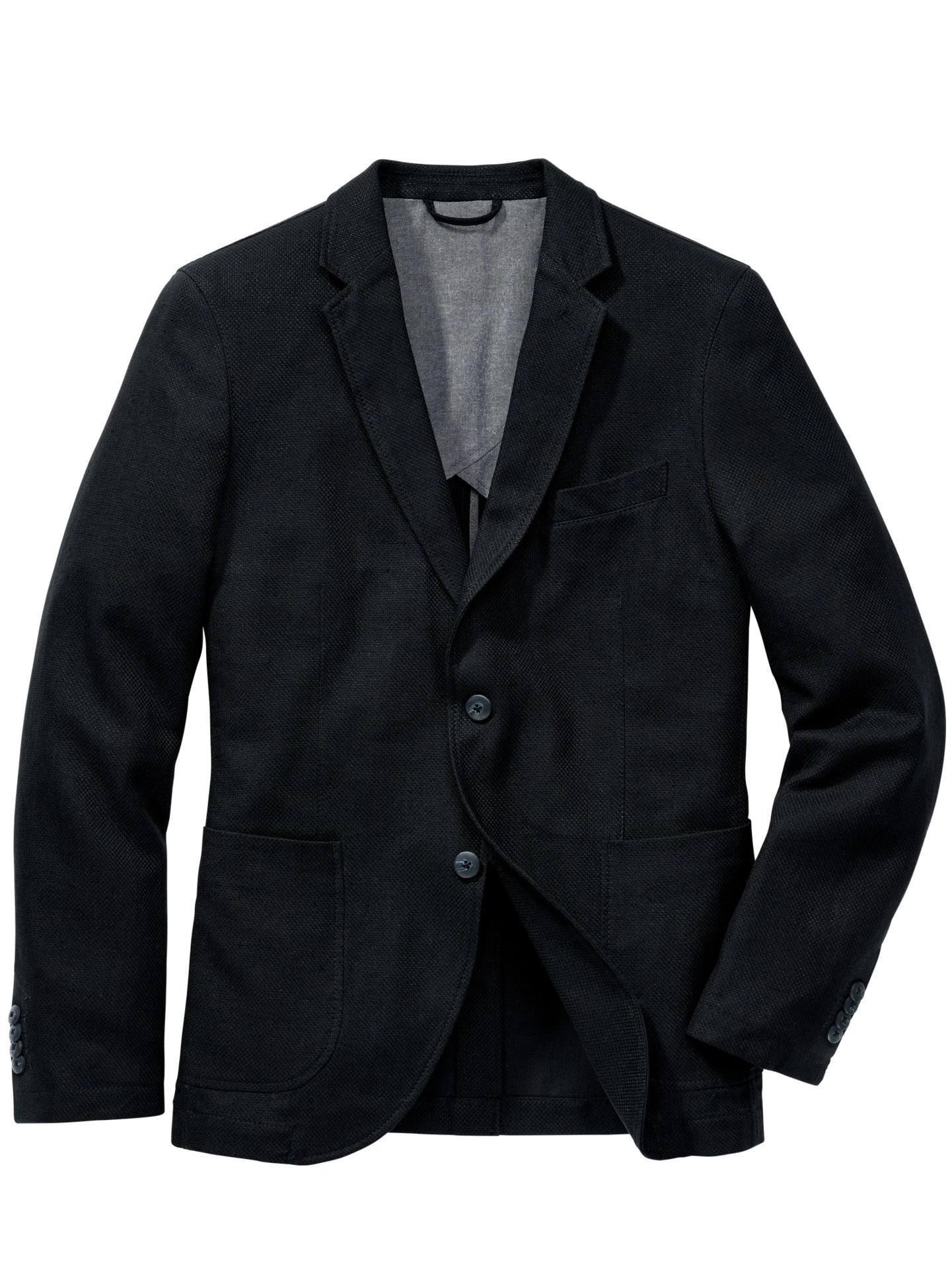 Verarbeitung: Zwei-Knopf-Sakko mit zwei aufgesetzten Taschen, einer Brustleistentasche, zwei Innentaschen, Rückenschlitz. Regular Fit.