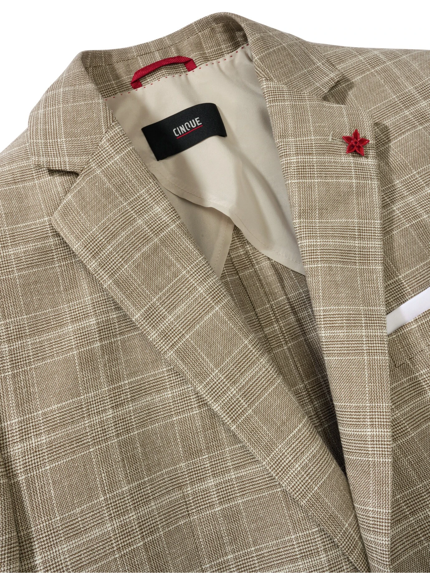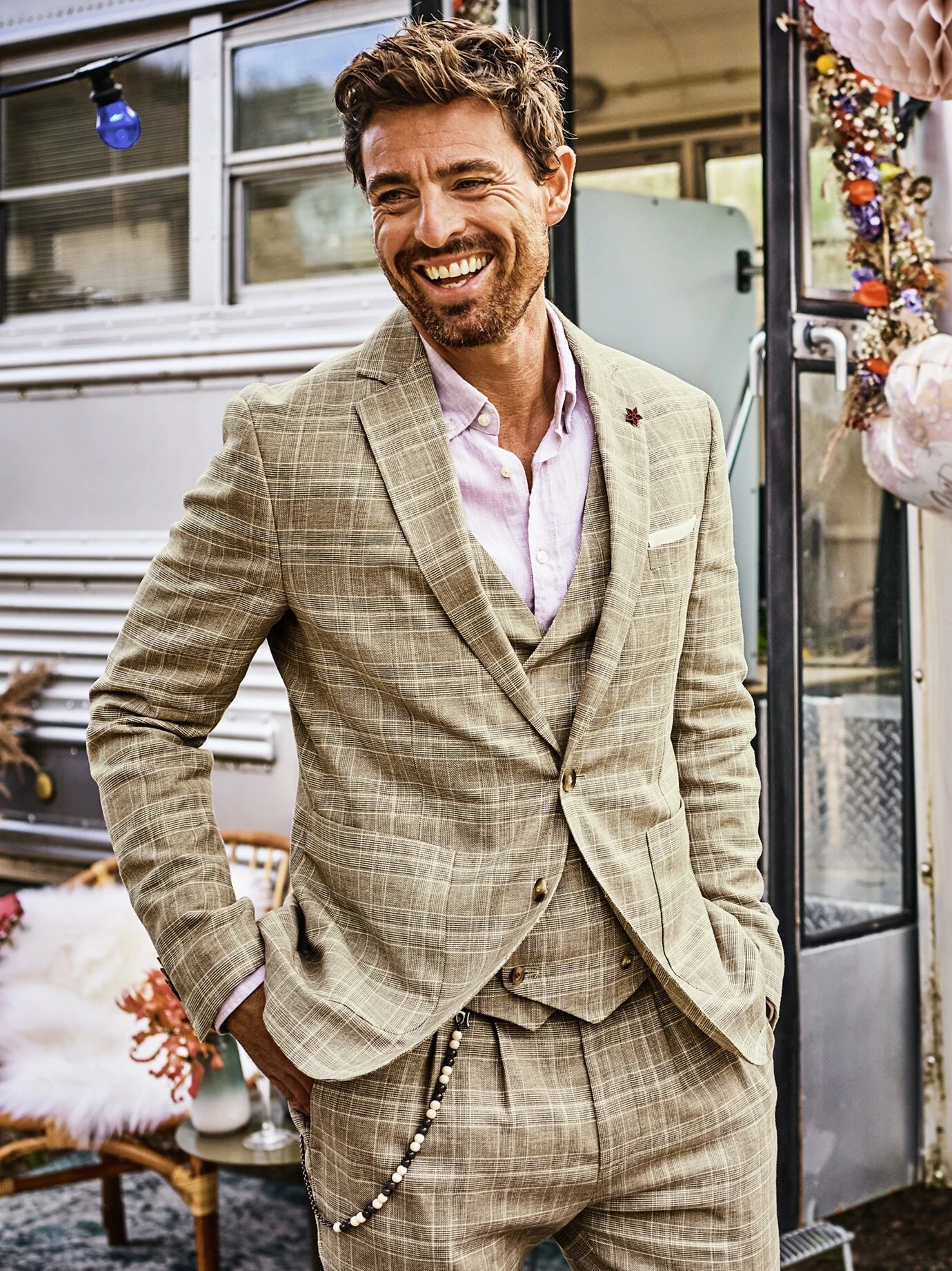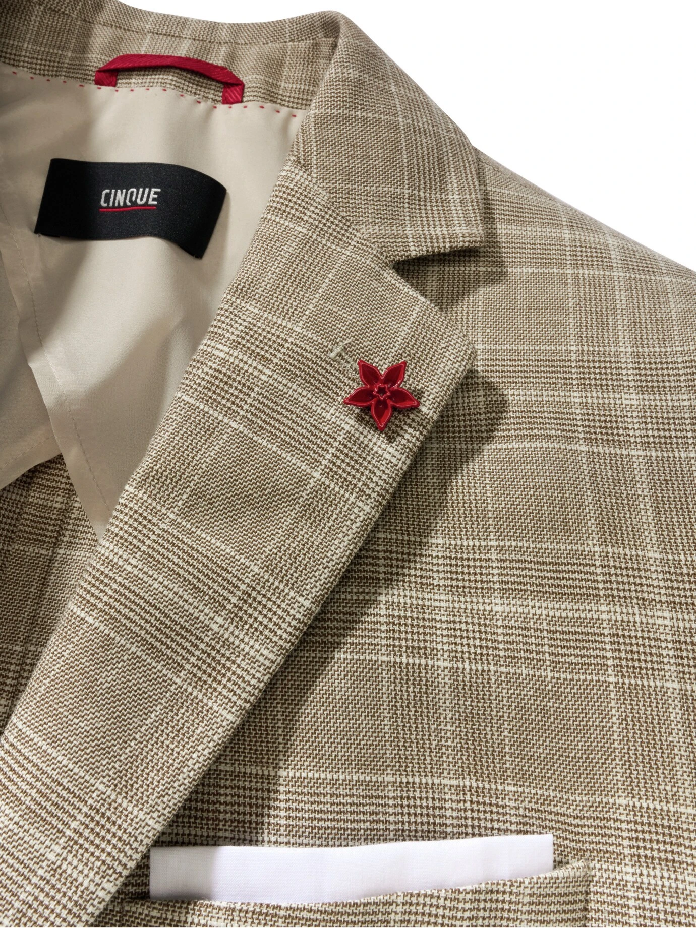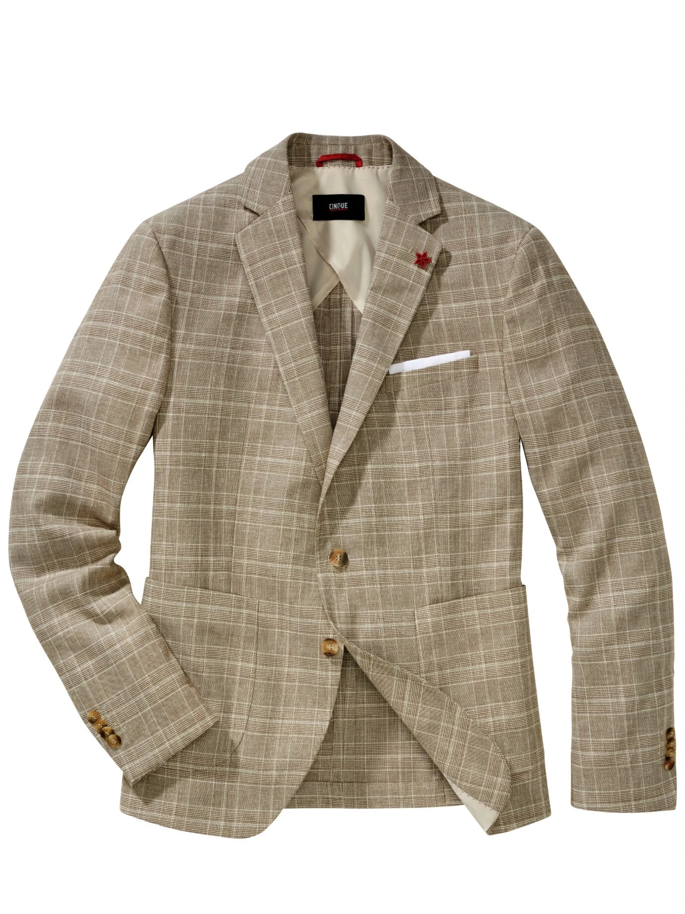 In ihm feiern Sie die Liebe. Mit ihm gewinnen Sie mehr Zeit zur Planung von freier Trauung, Boho-Hochzeit oder dem Ja-Wort am Strand – denn die Entscheidung für das passende Hochzeitssakko liefert das Haus CINQUE. Ideal als Dreiteiler mit Weste (Nr. 24-6777-5) und Hose (Nr. 24-6776-8). Dazu ein Klappmanschettenhemd, ein Einstecktuch, edle Lederschnürer (oder barfuß) und ein Lächeln über beide Ohren. Das Karo verleiht Eleganz, für das Vintage-Flair sorgen die Knöpfe in Hornoptik. Sofern der Bräutigam einverstanden ist, auch eine gute Wahl für Gäste. Der Stoff fällt leicht, lässt Sie durch den Leinenanteil auch bei Hitze entspannt bleiben und sieht noch beim Mitternachtssnack frisch aus.