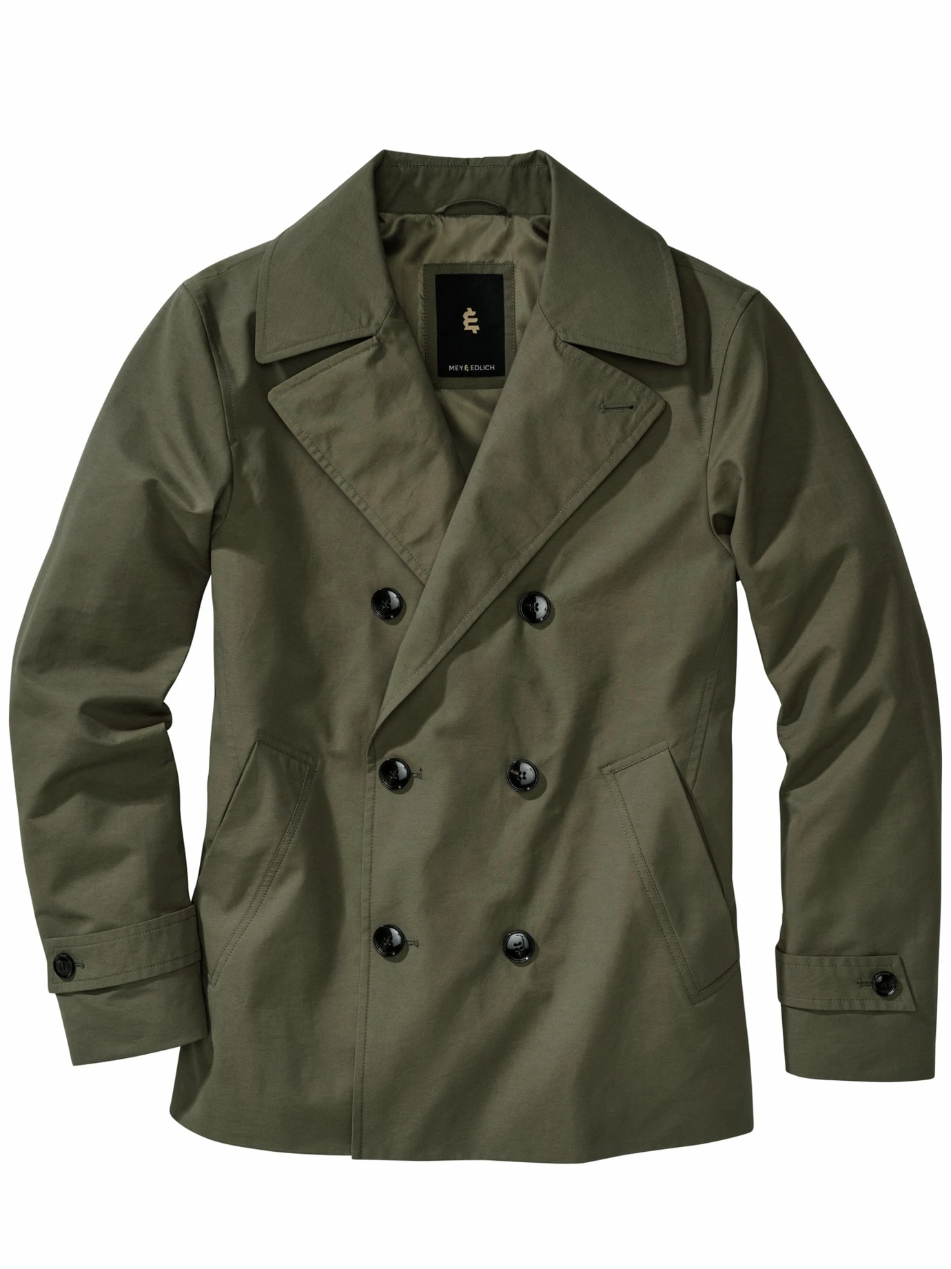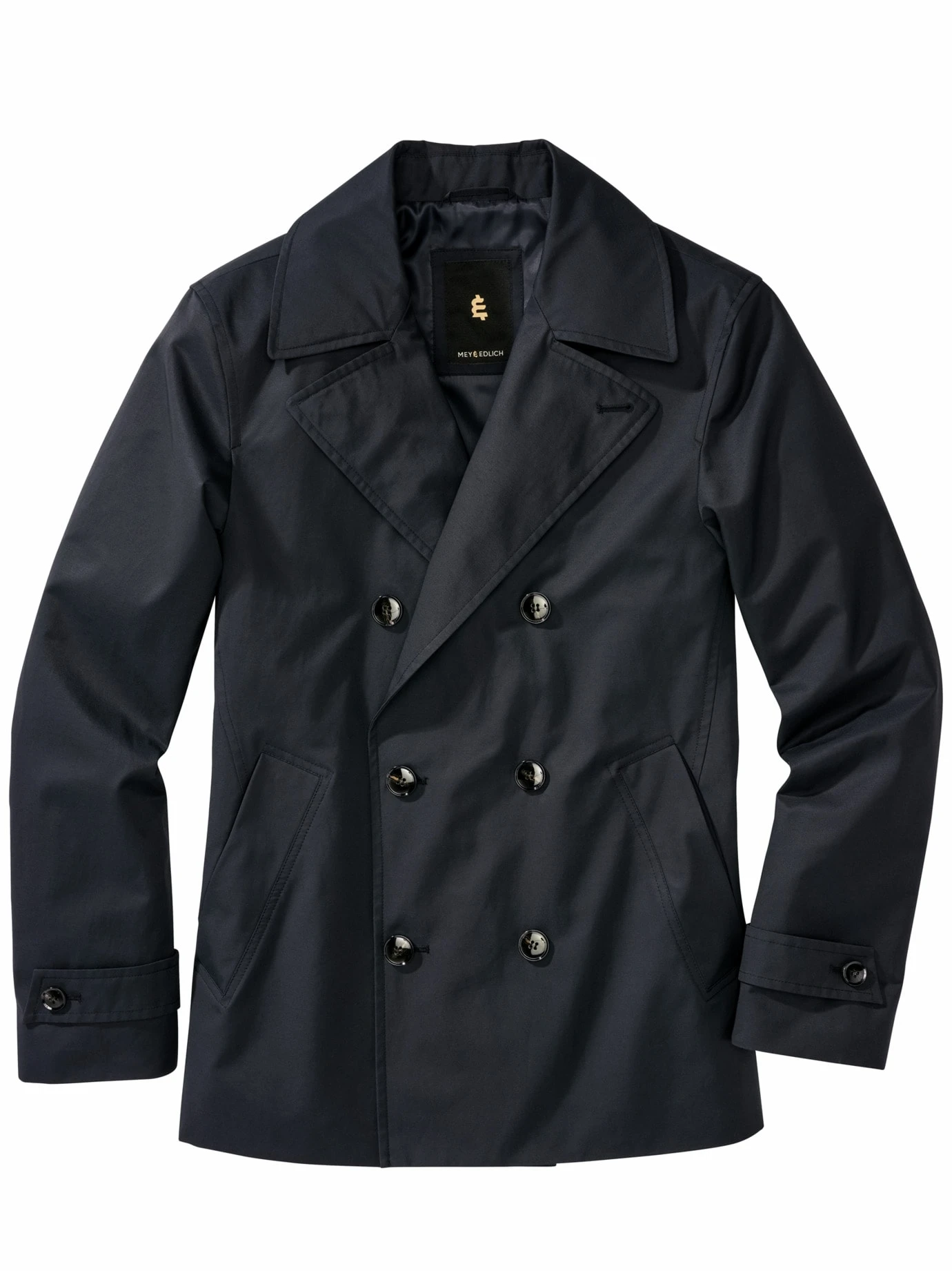 Dem Ansehen nach hundertpro ein Caban. Das kann jeder Seebär von altem Schrot und Korn bestätigen, auch wenn hier, statt schwerer Wolle, eine Hightech-Baumwollmischung den eleganten Doppelreiher leicht und luftig dem Sommer zuschreibt. Der Kragen mit großem Revers fällt gut und kann bei Bedarf hochgestellt werden, um Winden zu trotzen. Der businesstaugliche Überzieher ist ein wenig verkürzt zum Original und im Inneren edel mit einem leichten Vollfutter ausgestattet. Stark im New Businesslook mit Jeans und Pullover, noch edler mit Hemd und Chino. Dazu standesgemäß ein Paar schicker Lederschuhe, sportlicher mit Sneakern.