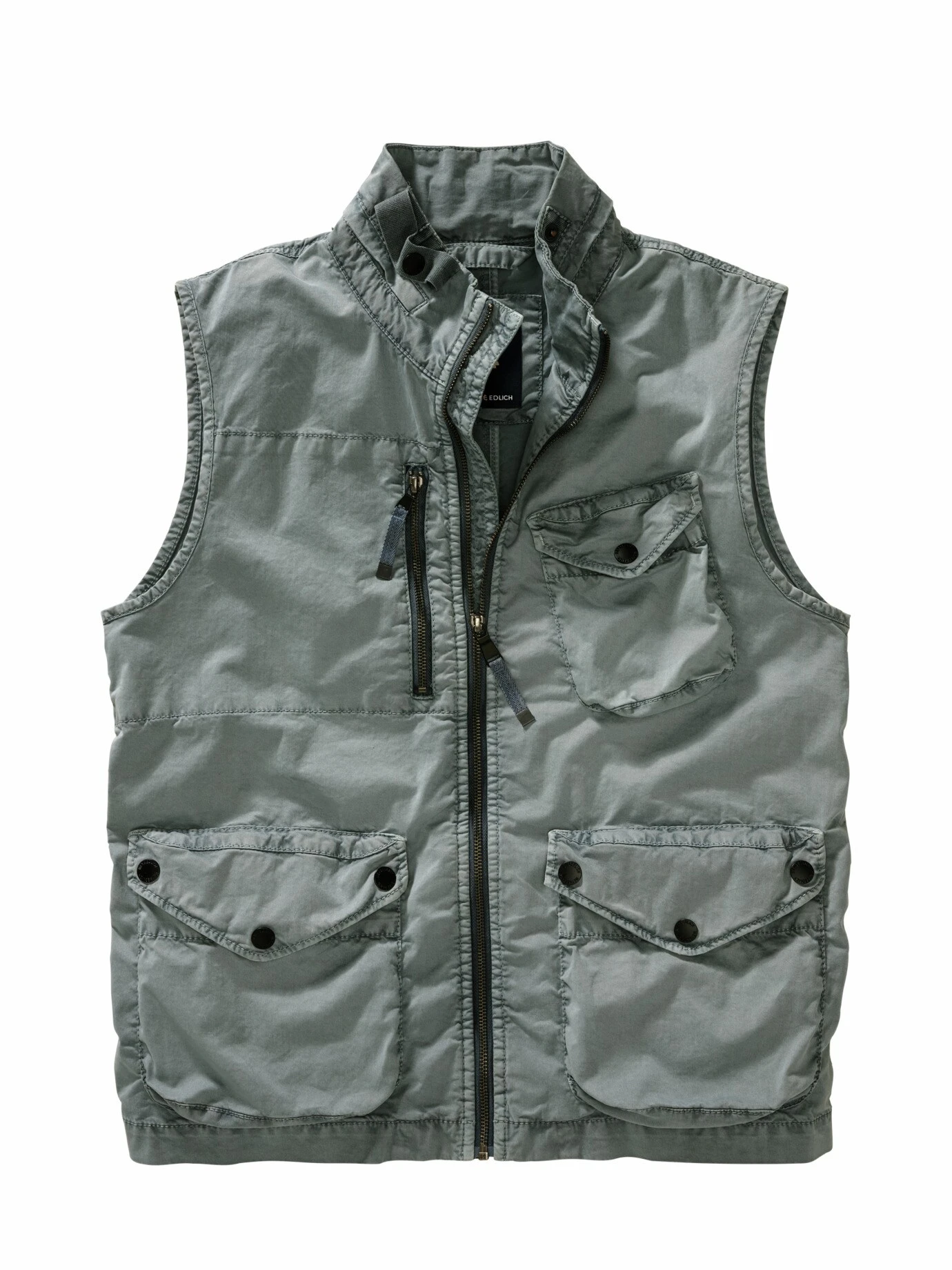 Für Männer, die Projekte angehen. Zu tun gibt es immer was, diese Weste verstaut alles, was Sie zum Realisieren benötigen. In die drei aufgesetzten fetten Pattentaschen passen für den Zeltaufbau Heringe, Wasserwaage und Flaschenöffner – fürs intuitive Öffnen nur mit Druckknopf, Wertvolles wie Ihr Smartphone bewahren Sie eh in der Reißverschlusstasche. Gemacht aus kerniger Baumwolle, den Schuss Elasthan trägt die Weste, damit Sie sich dauerhaft in ihr gut bewegen können. Schöner Used-Look, der mit dem Erleben immer besser wird, ob zu Cargo und Shirt oder zum Pullover samt Jeans.