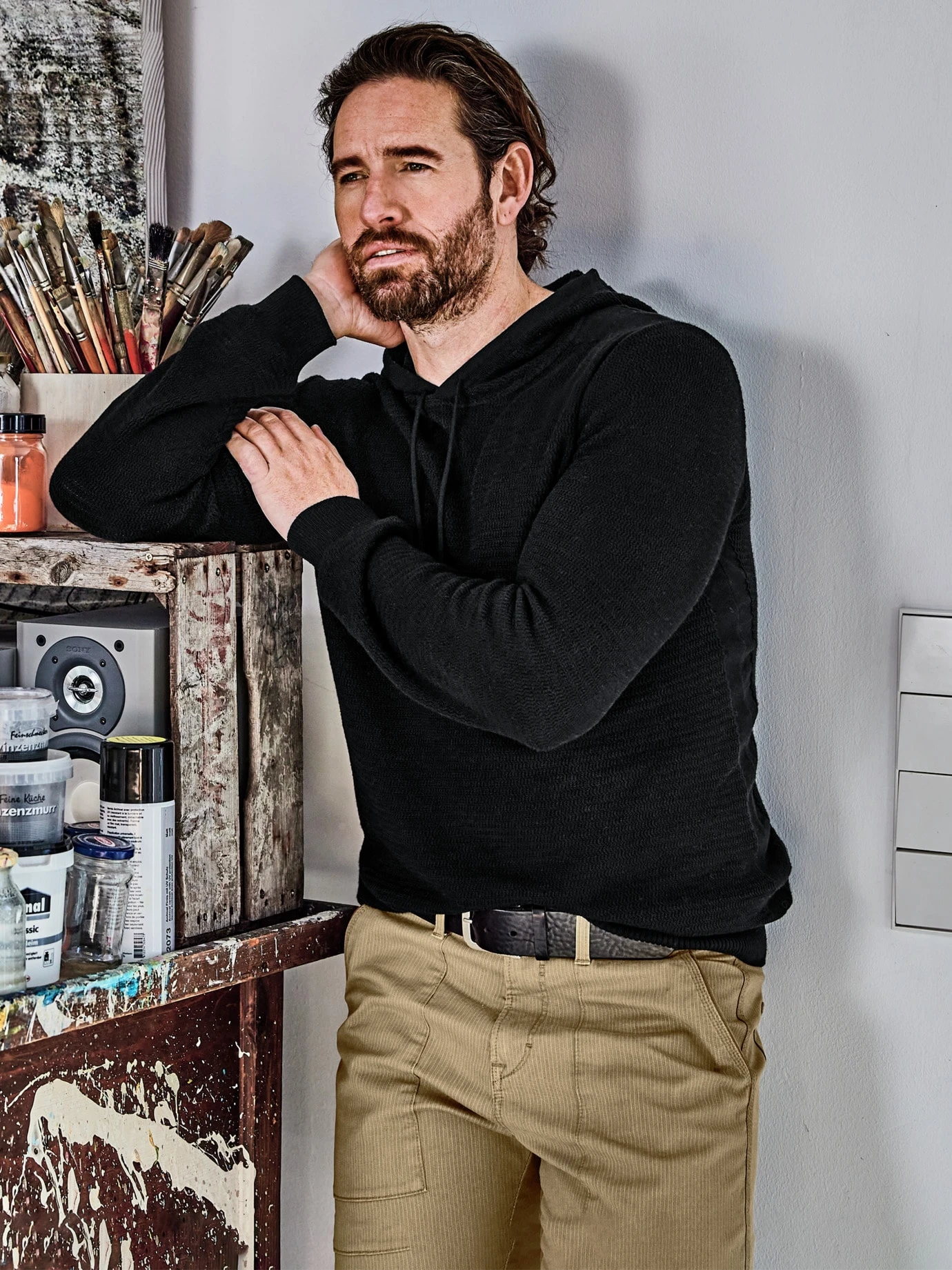 Zwei tiefe Fässer für butterweichen Griff und satte Farbe. Ein toskanischer Gerber legt zunächst das kernige Vollrindleder in ein derbes Fass und schlägt es darin so lange aus, bis sämtliche Feuchtigkeit verflogen ist. So erhält das trockene Leder sowohl seinen geschmeidigen Griff als auch die schön gelebte Struktur. Dann bettet er es in ein Färbefass, sodass die Farbe bis in die letzte Pore satt eindringt.