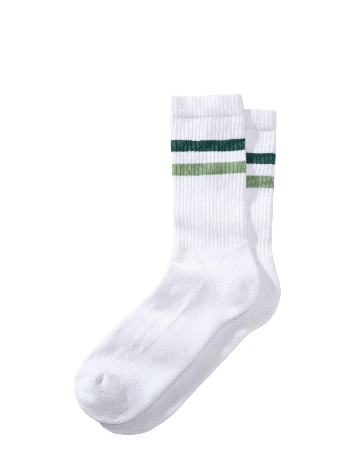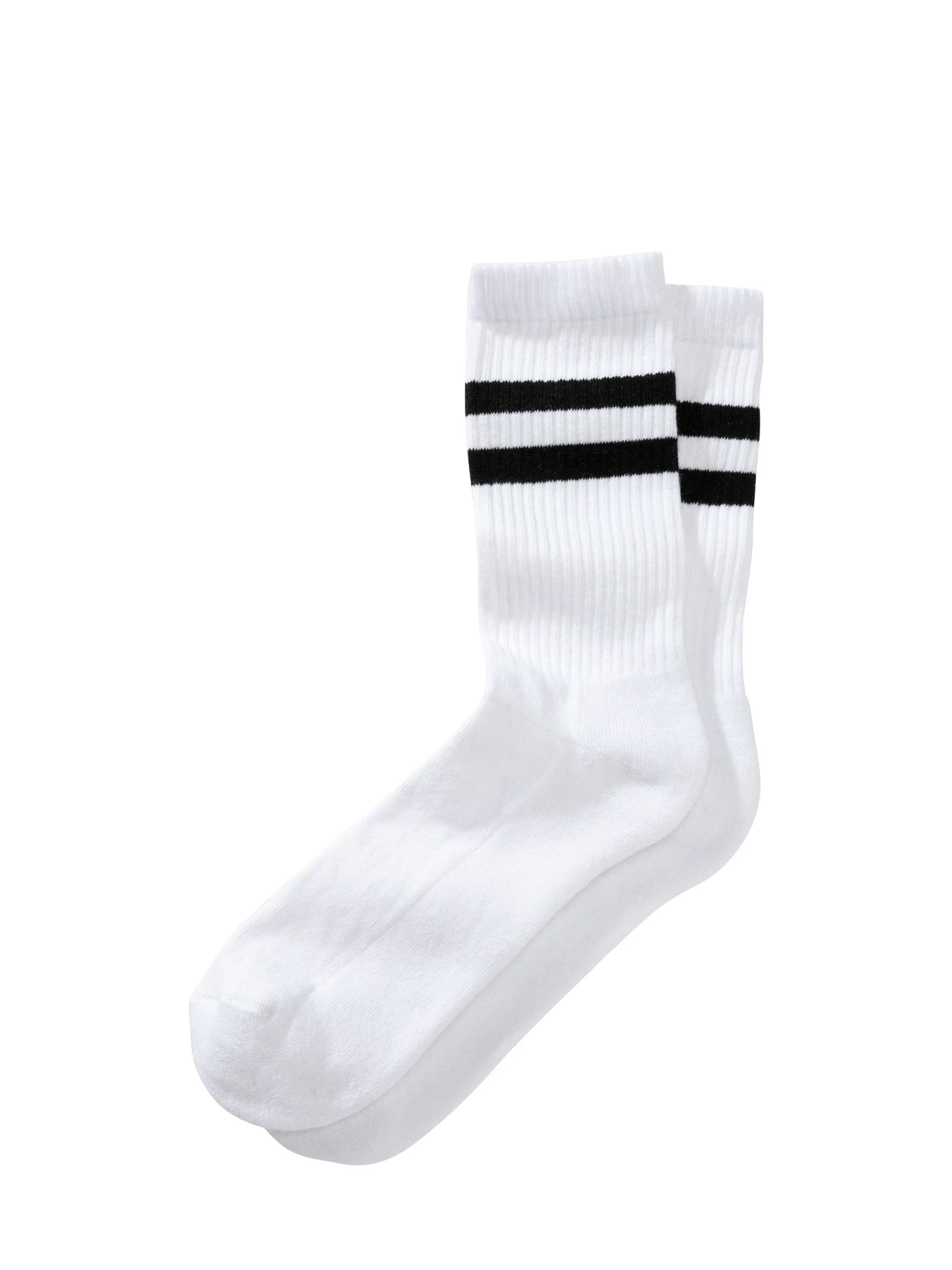Die Retro-Sommervariante. Weiße Socken sind zurück, allerdings klassisch clean nun abgesetzt mit Streifen – so sehen sie selbst cool zu Sneakern samt Jeans oder (ganz sichtbar) zu Shorts aus. Diese tragen sich sehr leicht, in Italien mit Bedacht auf gutes Fußklima gestrickt.
