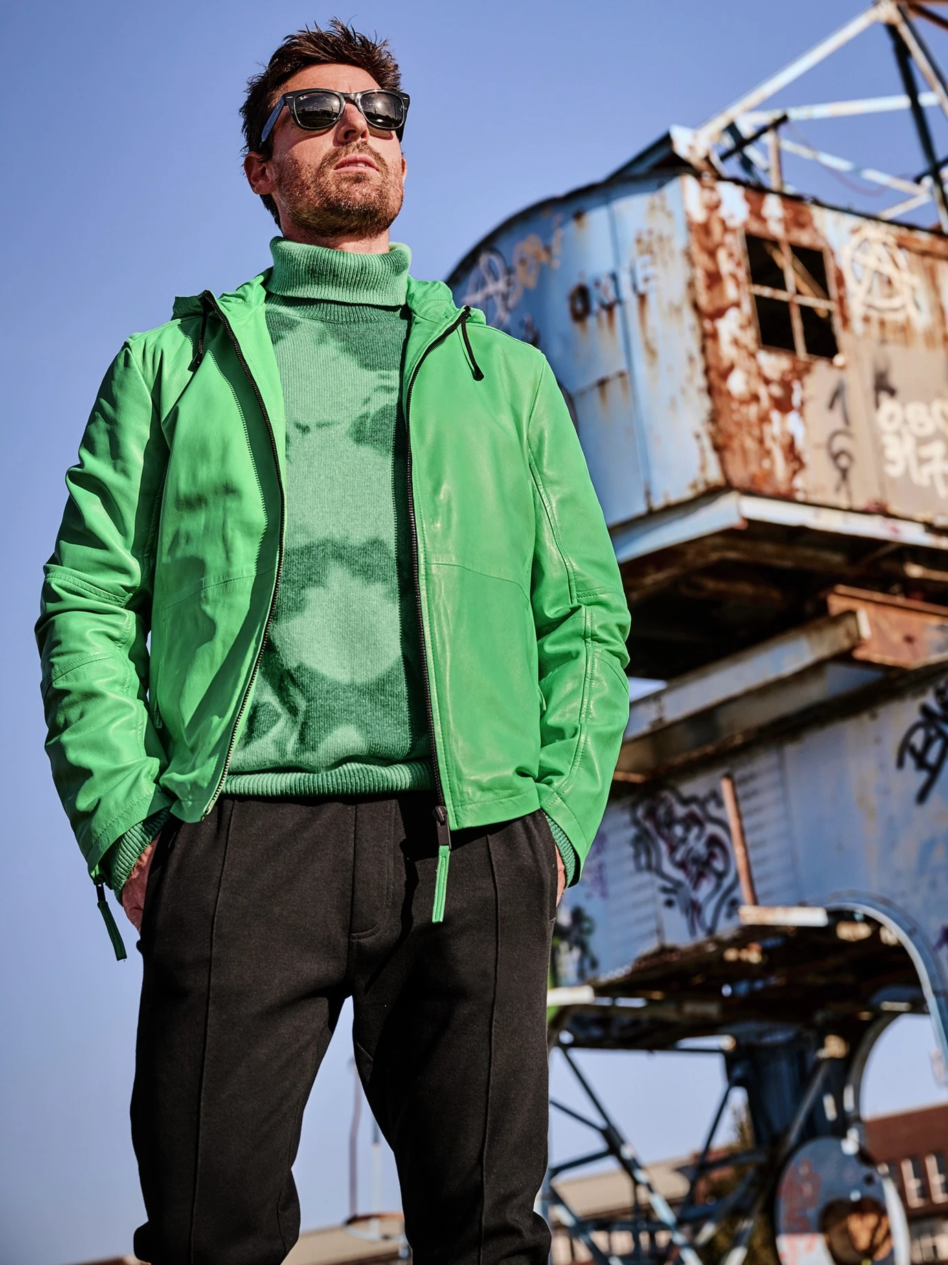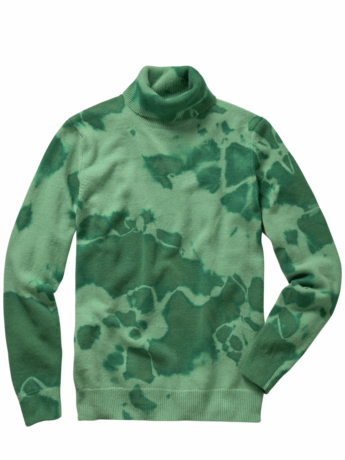 Sorry, der verbreitet sich nicht wild. Zumindest nicht so wie Schwimmfarn, dem nur Teichexperten Herr werden. Optisch liefert dieser Rolli einen frischen Aspekt zum dunklen Hosenrepertoire. Gestrickt ist er aus einem italienischen Wollgarn, das weich und scheuerfest ist und dabei Wärme gut isoliert. Gefärbt wird dann im Ganzen, so entsteht der schöne Batikeffekt. Die Outfitempfehlung des Hauses lautet auf schwarze Chino, wer sich traut, der wählt direkt Grün (wichtig dann nur, eine Nuance heller oder dunkler).