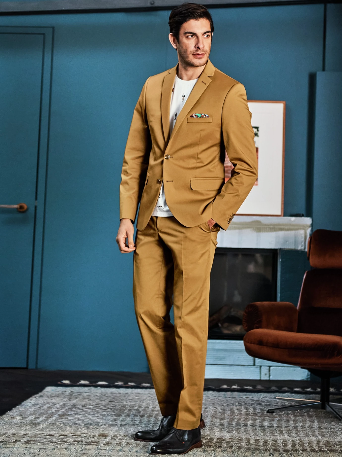 Auffallen, ohne Aufsehen zu erregen. Dieses Anzugsakko ist für jene Gratwanderung innerhalb der Männergarderobe entwickelt. Mittlerweile erfreut es sich so großer Beliebtheit, dass wir es regelmäßig in neuen Farben launchen. Hier ein optimistisches Senfgelb (Pantone® nennt die Farbe „gold nugget“), das Eindruck hinterlässt. Der Rest Ihres Outfits darf dann gerne schlicht sein – wie ein weißes oder schwarzes Hemd mit dem dazu passenden schwarzen Lederschnürer.