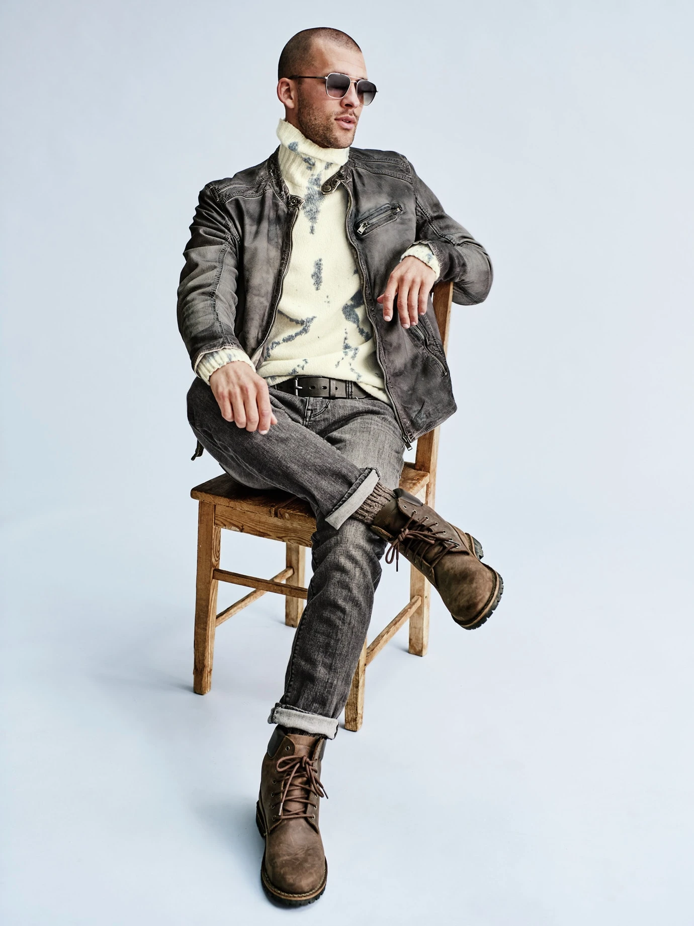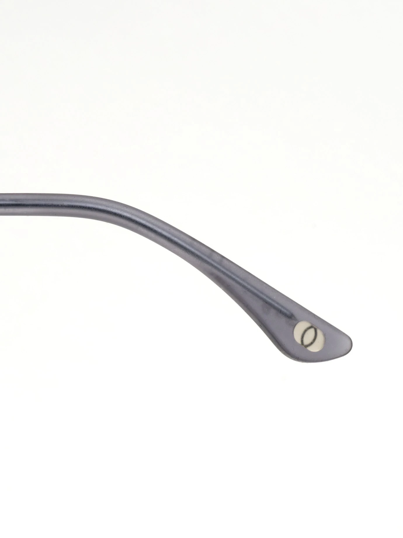 Die Autofahrtaugliche. Ihre Gläser aus bruchsicherem CR-39-Kunststoff sind rückflächenentspiegelt, für den Sonneneinfall am oberen Rand stärker getönt, zum Armaturenbrett hin schwächer. Der aufgestellte Nasensteg verleiht ihr eine kantige Form und lässt sie mit einer Hand intuitiv auf- und absetzen, ohne die Gläser zu verschmieren. Ansonsten: filigraner Titanrahmen, die Bügel sind mit Edelholz veredelt.