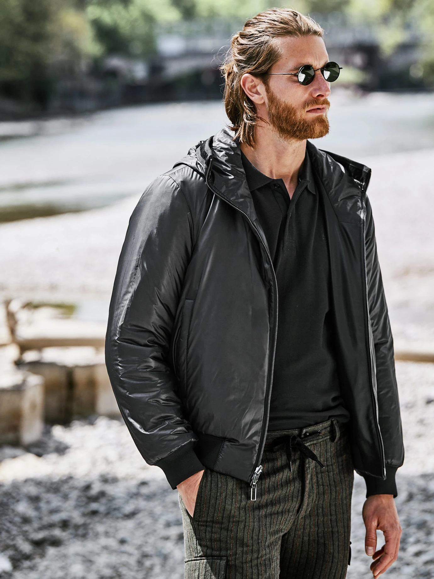 In dieser Cargo stecken neugierige Beine, die fernab vorgefestigter Pfade neue Wege beschreiten. Ihren Anforderungen gerecht wird sie, weil sie sich bequem trägt (dank italienischem Baumwollstoff) und strapazierfähig ist (Hightech-Anteil). Mit Platz in den Taschen für Powerbank und Bahnticket, der Tunnelzug am Bund verschwindet bei Bedarf unterm Longsleeve und liegt einfach geschmeidig an. Kombinationsstark, auch oder gerade wegen der eingewebten Streifen in Lauborange und Asphaltschwarz.