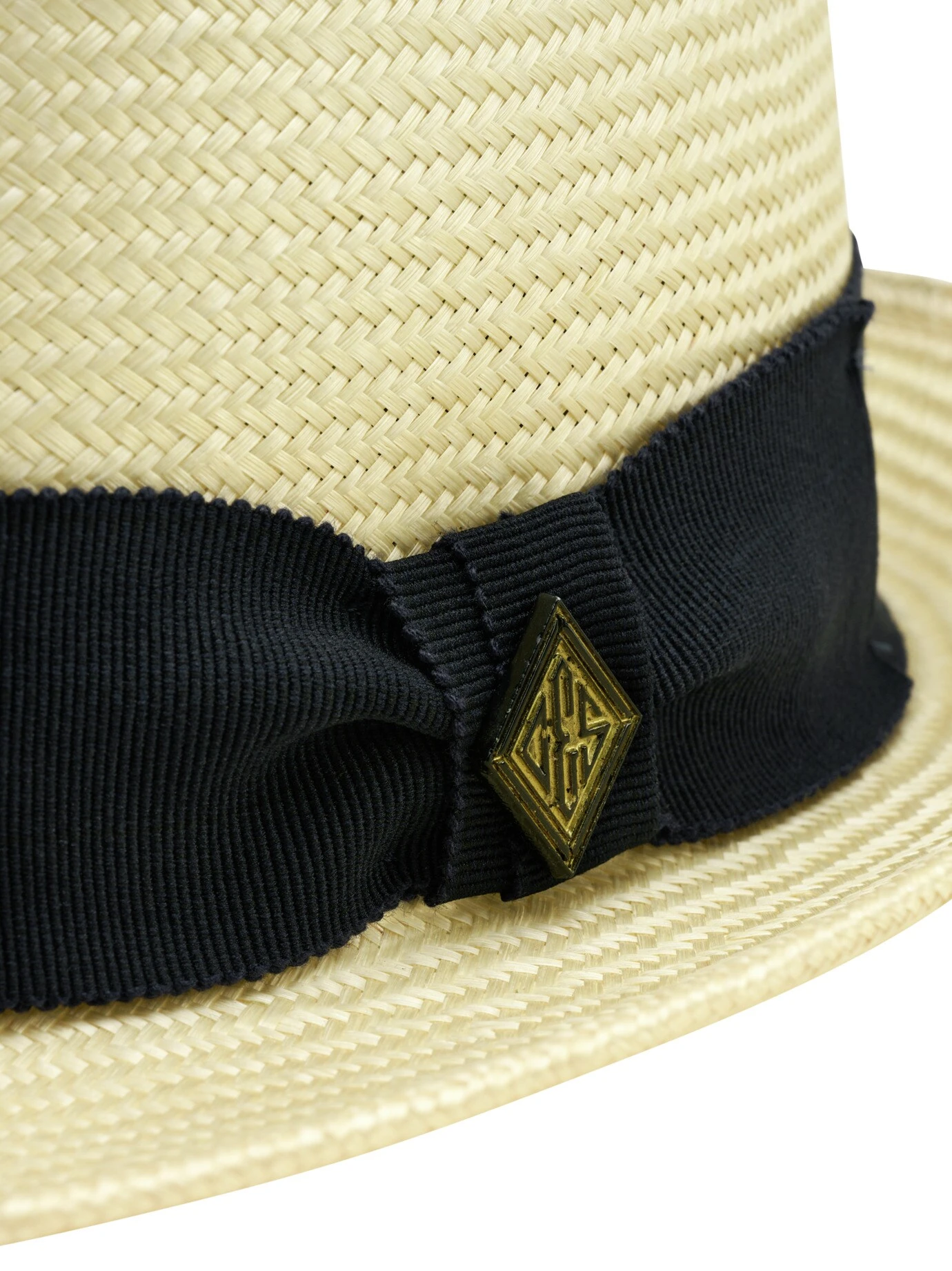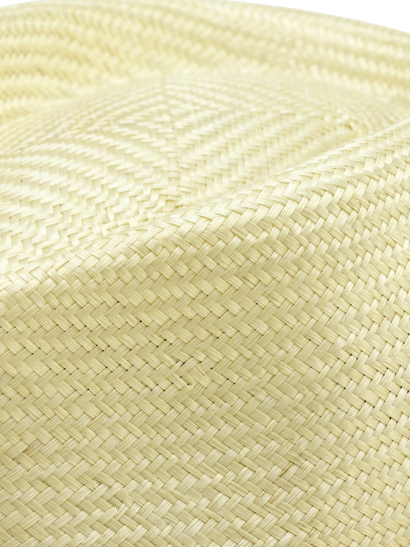 Angelehnt ans kölsche Hutmacherhandwerk anno 1950. Jeder Trilby ist auf einem Vintage-Stumpen von Pias Vater in Form gebracht. Ein Beweis für die klassische Form, mit leicht erhöhtem Kopfteil, typischem Ententeich und leicht gebogener Krempe. Aus den Blättern der Agave Sisalana geflochten, im Vergleich deutlich feiner, mit dezentem Schimmer und schirmt wunderbar Sonne ab.