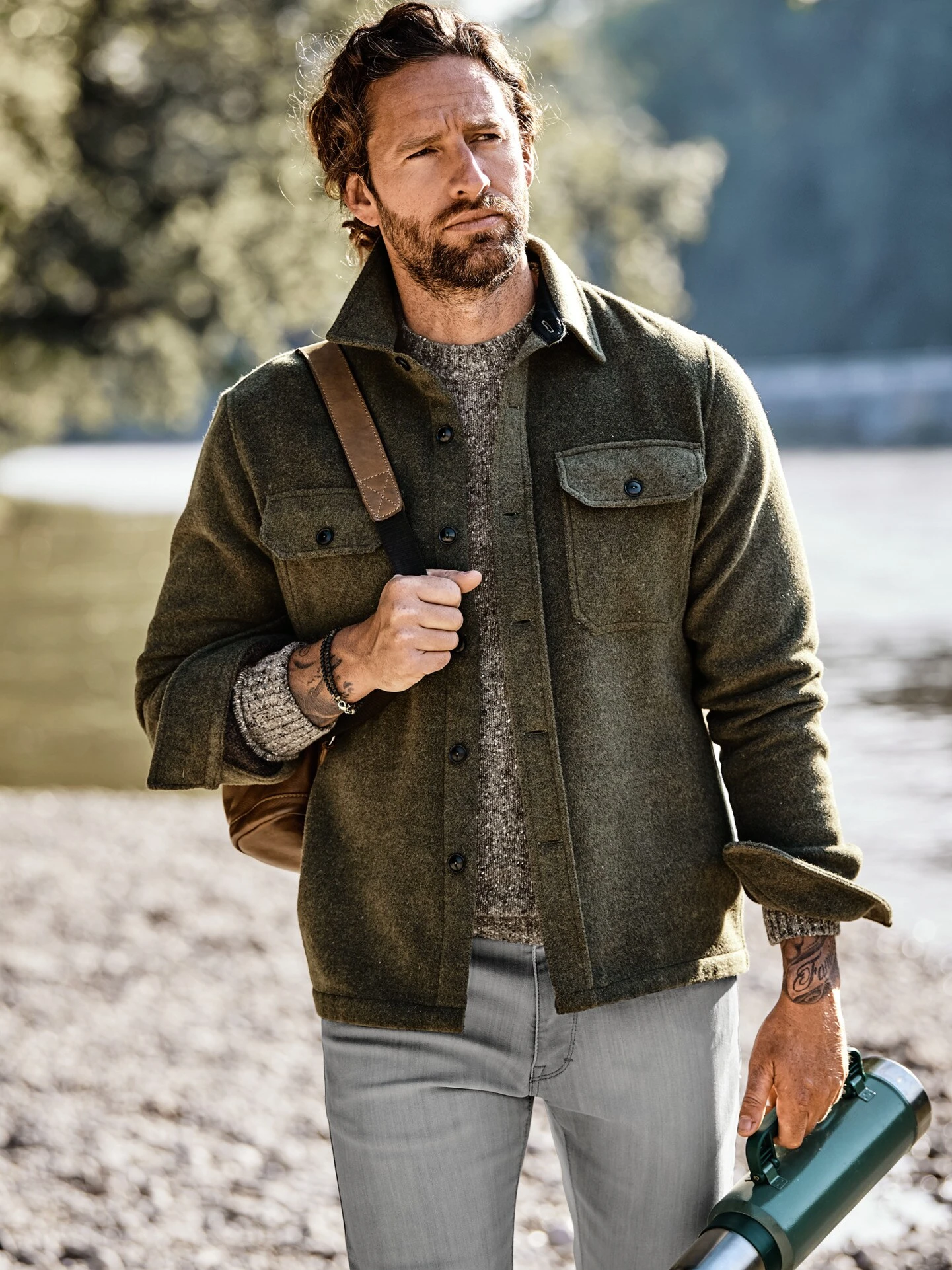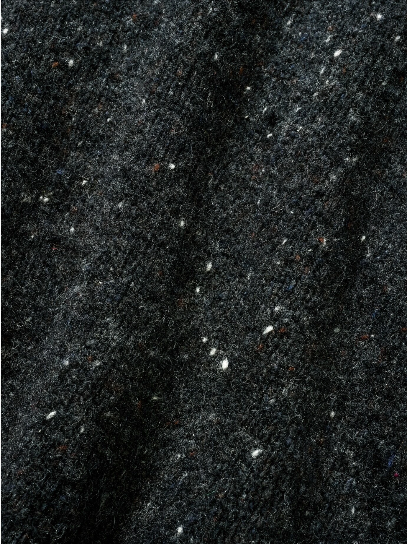 Wie er einst von Hand gestrickt wurde. Tweedgarnen haftet immer etwas Handwerkliches an. Weil sie nicht perfekt sind und in unregelmäßigen Abständen diese charakteristischen bunten Verdickungen haben. Heute wird das bewusst mitdesignt – so wie für diesen Pullover.