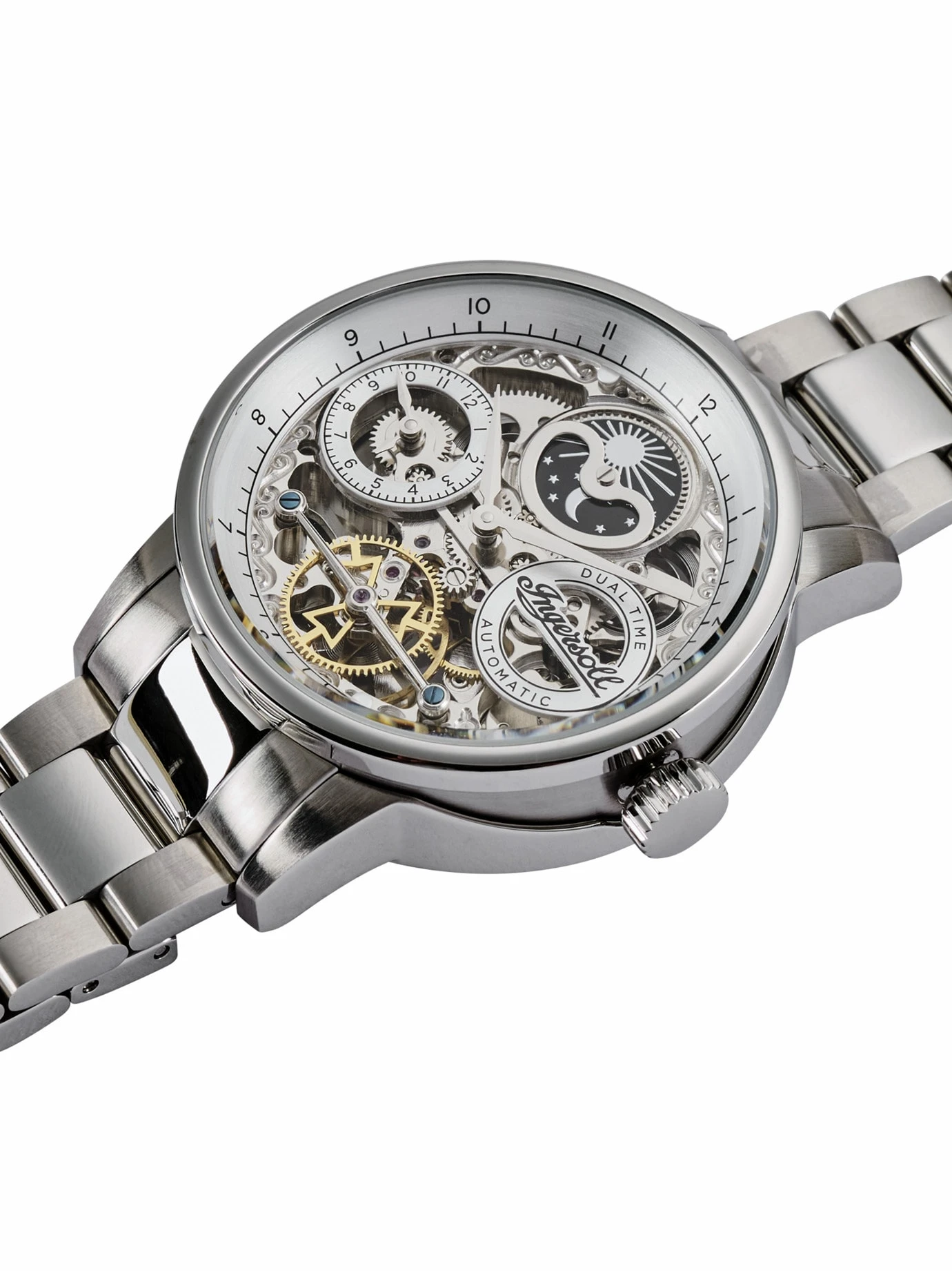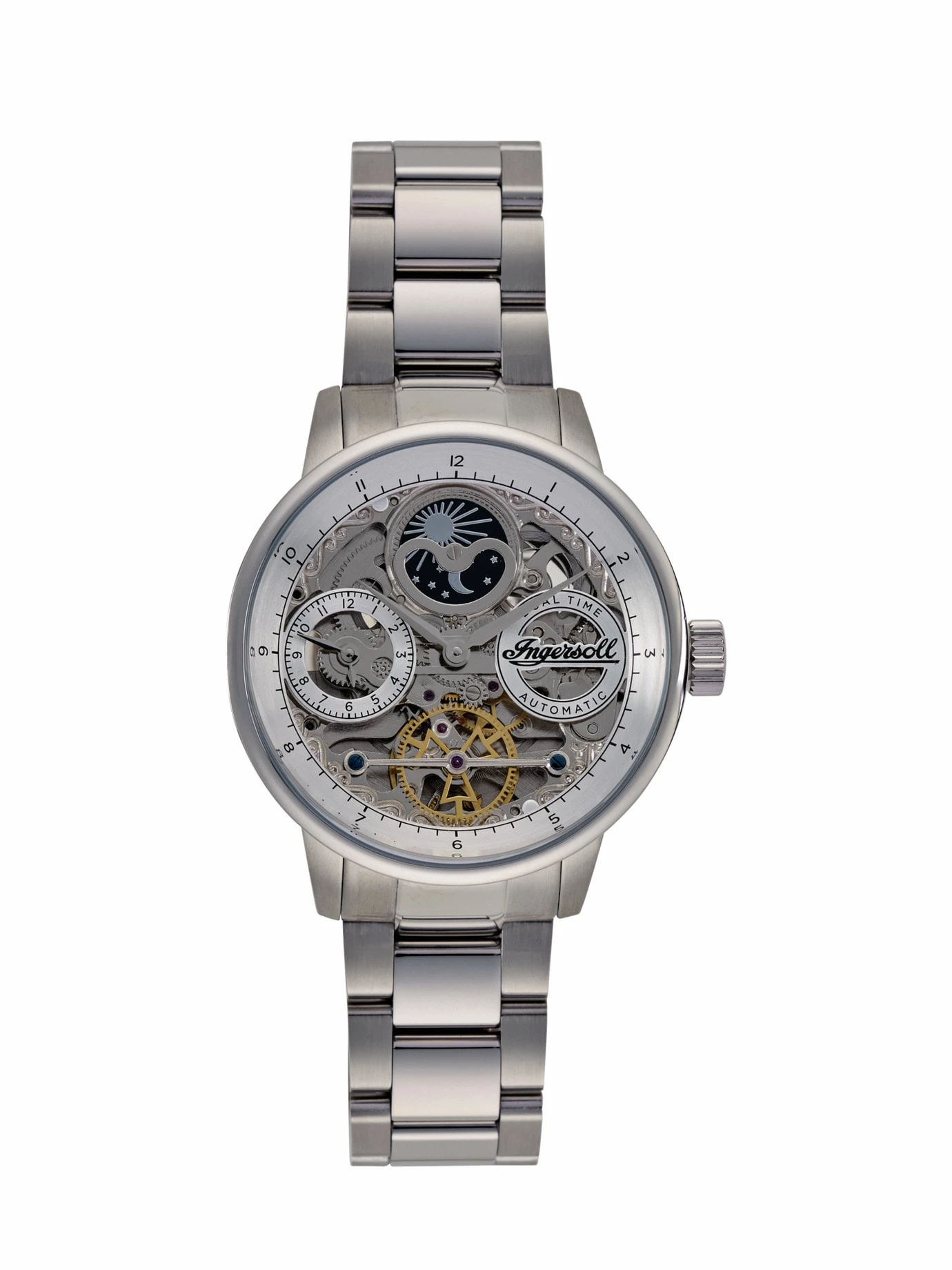 Unterliegen dem Grundgedanken, getragen zu werden. In den Uhren von Ingersoll stecken seit Gründung 1892 in New York neben einem 130jährigen Know-how ausgereifte Technik und hochwertige Produktion sowie Zuverlässig- und Alltagstauglichkeit. Gilt auch für dieses, komplett aus Edelstahl gefertigte Stück aus der The-Jazz-Kollektion. Faszinierend: Neben der Garantie von 30 Jahren gewährt Ingersoll auch hier den Blick aufs skelettierte Uhrwerk.