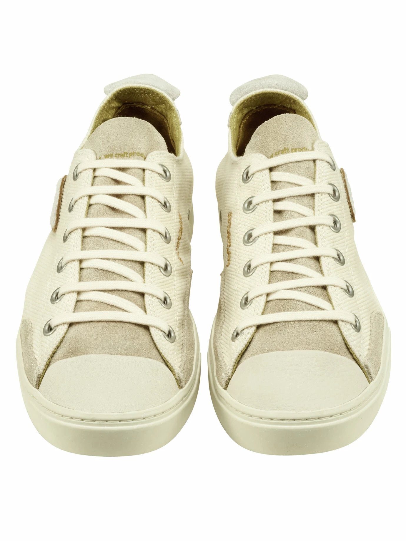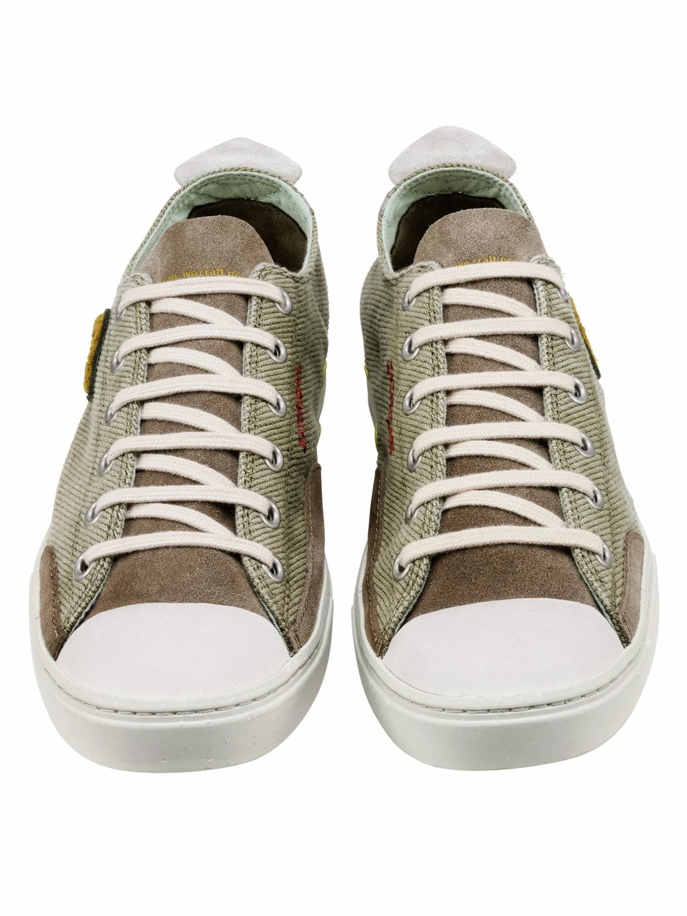 Material: Obermaterial: Baumwolle, Polyurethan. Futter: Rindleder, Baumwolle. Herausnehmbare EVA-Decksohle, mit Rindleder bezogen. Haltbar montierte Gummilaufsohle (recycelt). Mit feuchtem Schwamm abwischen. Der Schuh fällt klein aus, wir empfehlen eine Nummer größer.
