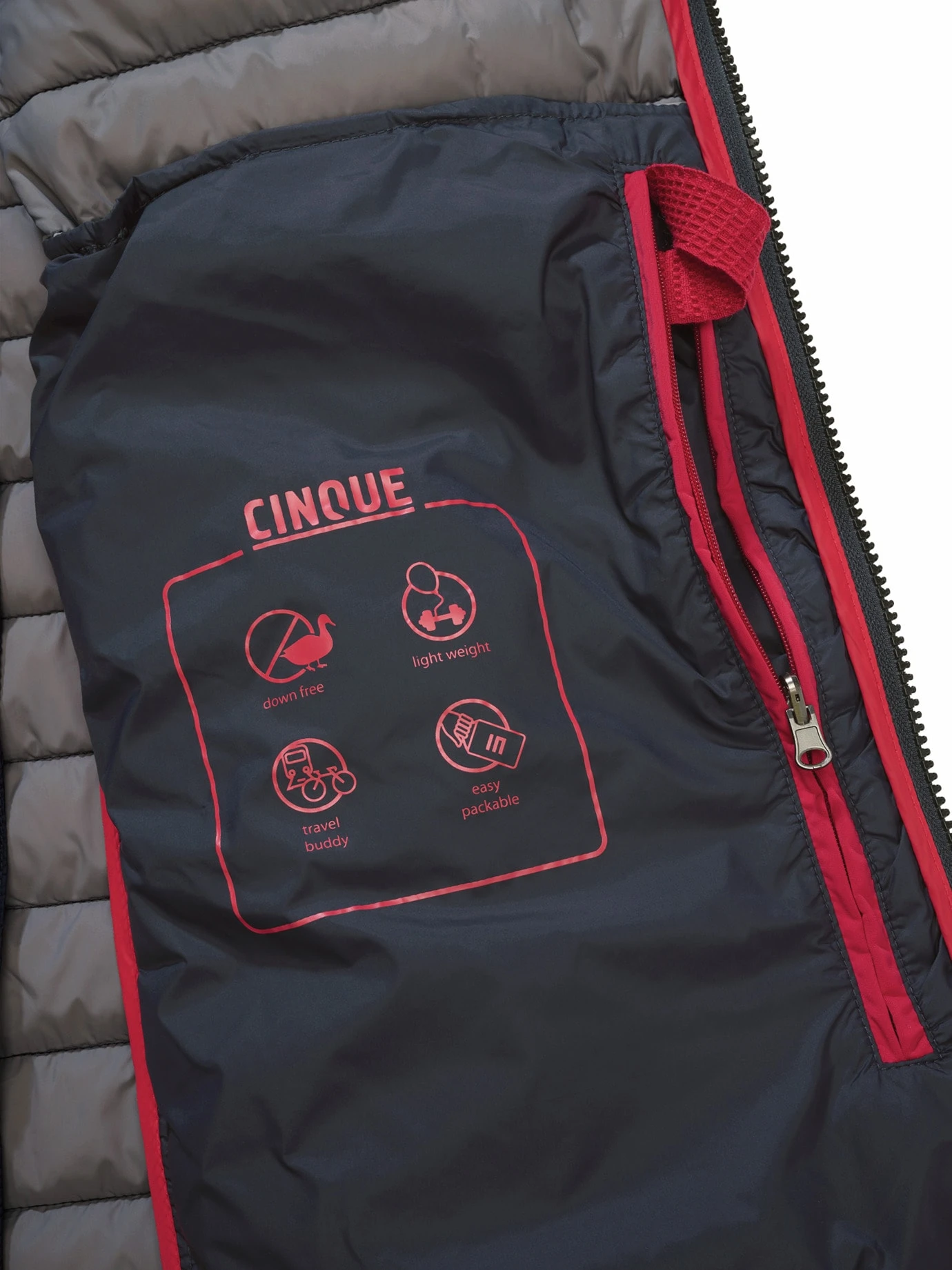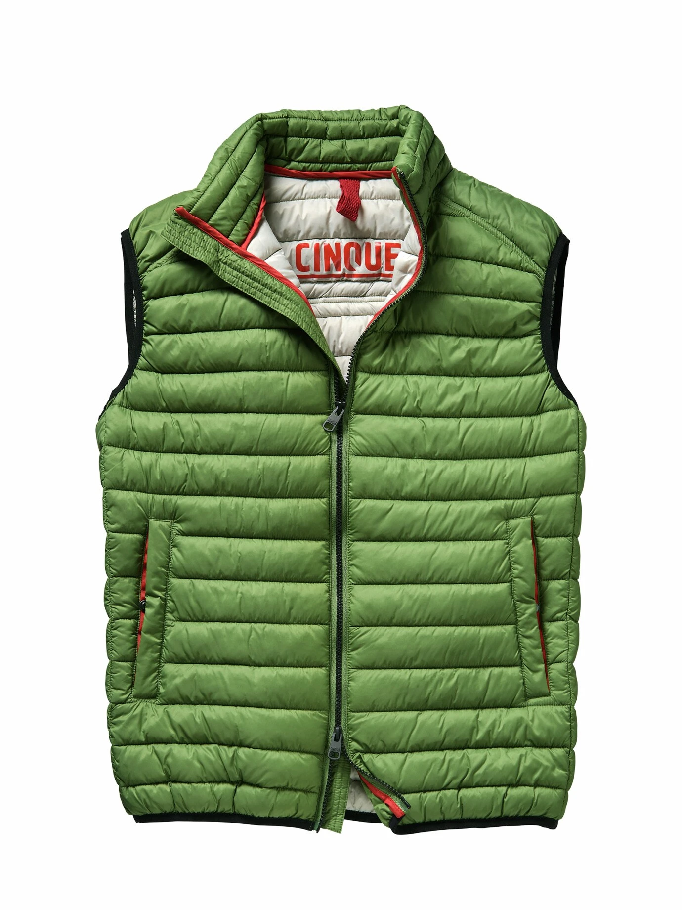 Ungeahnt leicht. Ungeahnt kombinationsstark. Das Kammernsystem dieser Weste befüllt CINQUE mit der zukunftsweisenden DuPontTM-Sorona®-Faser. Hierzu wird Mais aufbereitet, bis der Rohstoff wärmt wie echte Daune, aber das Gewissen schont. Die Weste ist atmungsaktiv und auf minimales Gewicht getrimmt: Mit ihren 290 Gramm ist sie zudem flach genug, um selbst unterm Sakko intelligenter Wärmespeicher zu sein. Dank wasserabweisendem Oberstoff funktioniert sie ganzjährig, im Herbst überm Pullover, im Winter unterm Mantel und ab dem Frühjahr überm Shirt.
