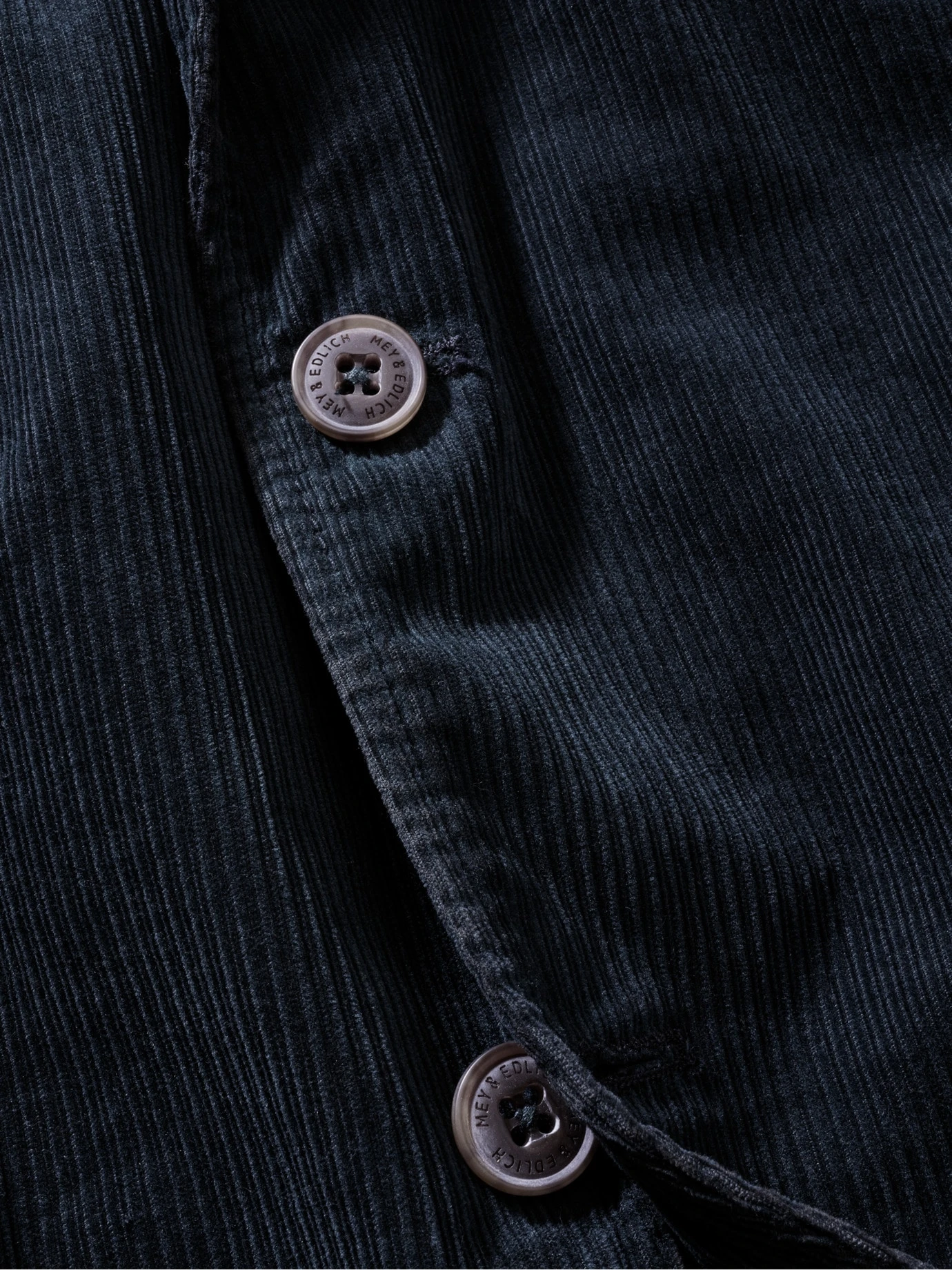 Bereit, wenn Sie es sind. Für dieses Sakko hat der französische Weber Velcorex den Cord neu erfunden. Jede Rippe hat ihre eigene Höhe, wodurch die Struktur ungewöhnlich lebendig wirkt. Eben eine Spur wilder, als man es vom samtweichen Gewebe kennt. Diese Wildcard ziehen Sie, wenn nicht klar ist, was der Tag außer Meetings noch bringen mag. Notfalls übersteht dieser Cord auch eine durchzechte Nacht, weil seine DNA als Arbeitskleidung unbarmherzige Behandlung verzeiht. Das geht so weit, dass man das Sakko auch in die Waschmaschine schmeißen und von links bügeln darf.