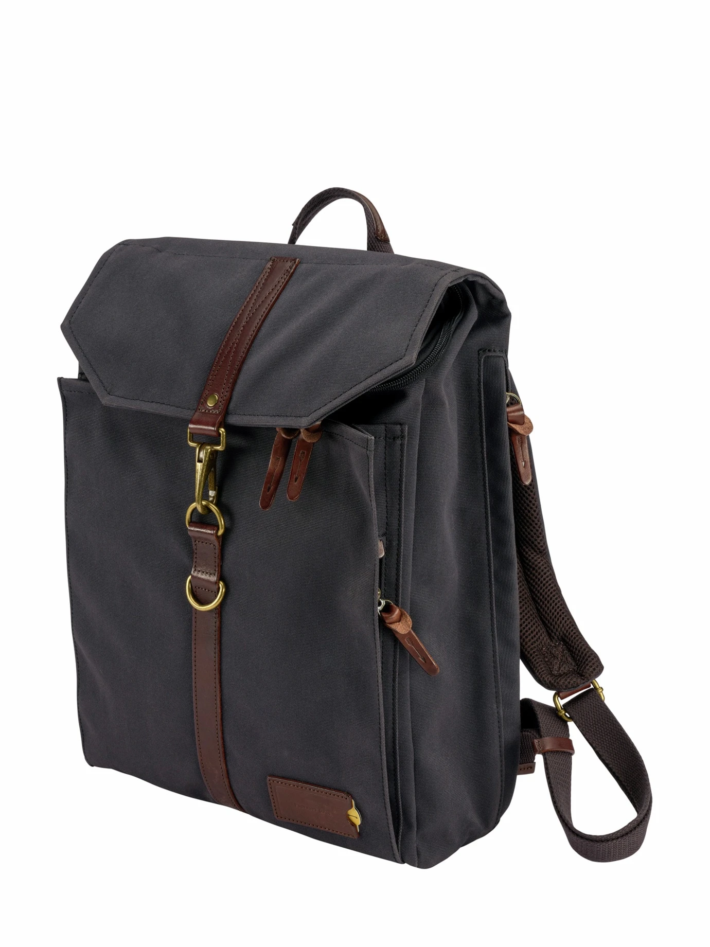 Material: 32 x 42 x 10 cm (B x H x T). Obermaterial: 100 % Polyester (recycelt), Rindleder. Futter: 100 % Polyamid. Regelmäßig abbürsten.