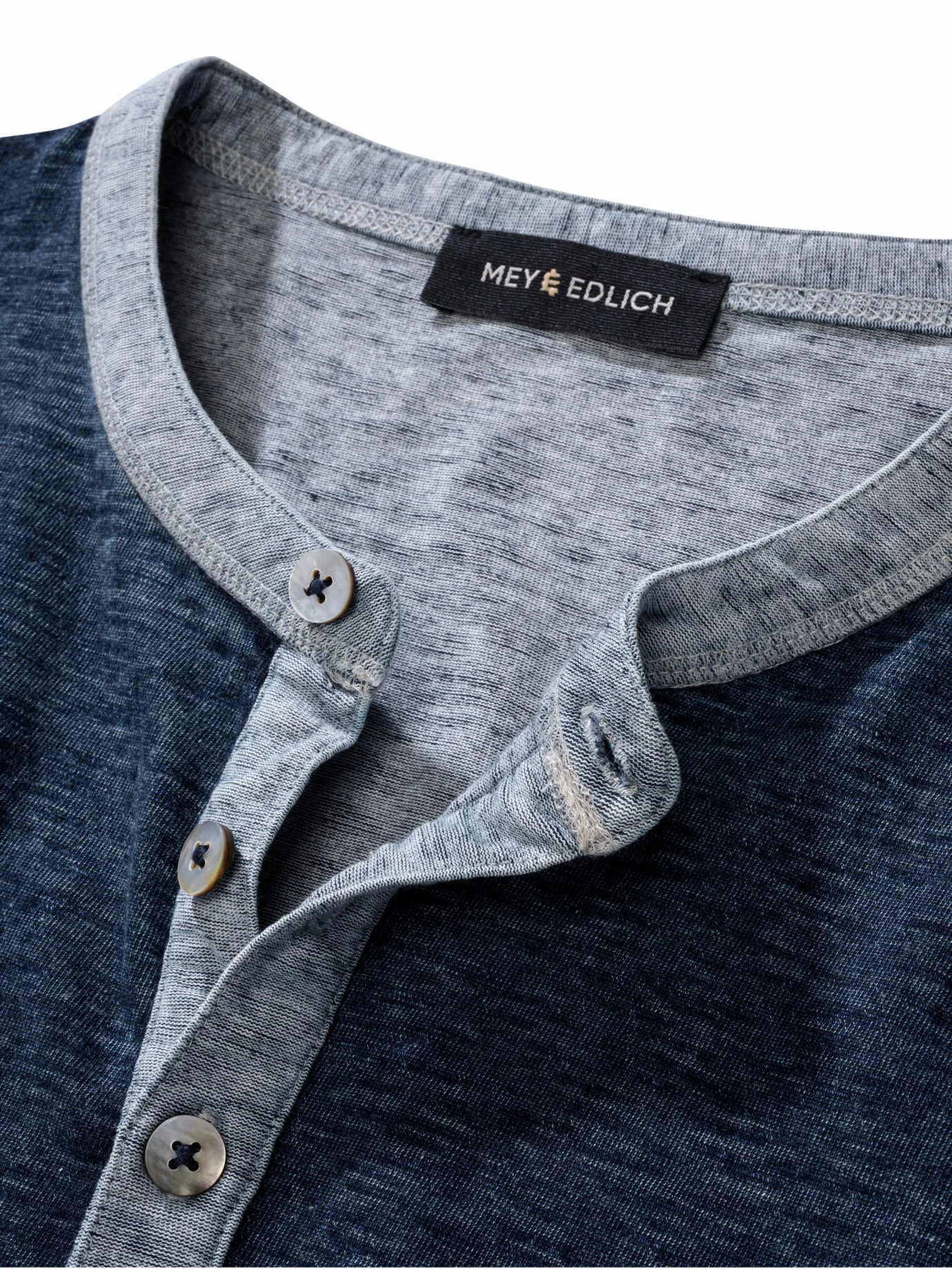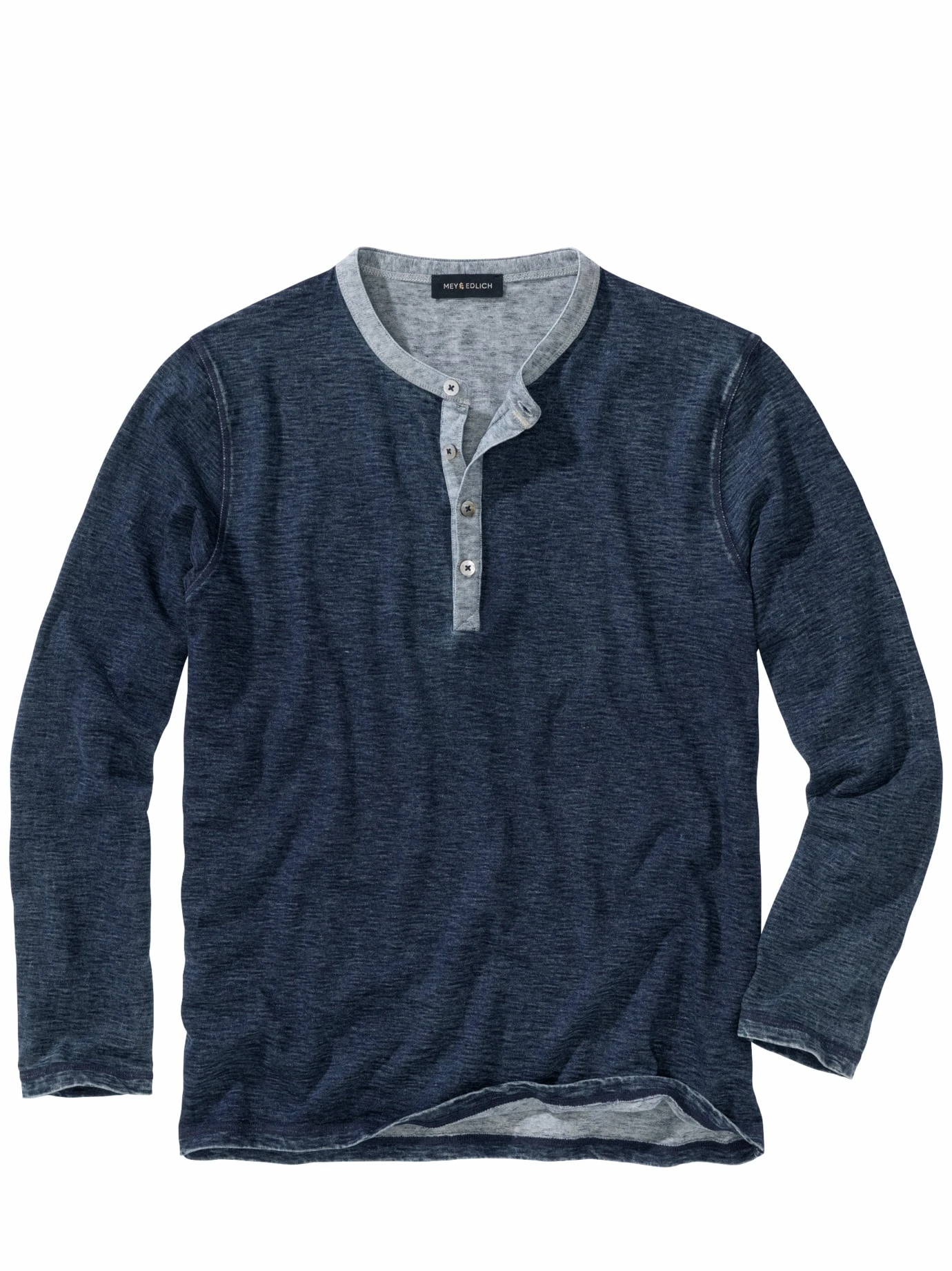 Die Zwischentöne bringen Tiefe. In dem Henley steckt einer, der weiß, dass es im Leben mehr als hell und dunkel gibt und das völlig in Ordnung findet. Die echte Indigofärbung verblasst mit jedem Waschen und Tragen etwas. Die unregelmäßige Struktur der weichen Baumwolle unterstreicht den Unperfekt-Look. Das Henley passt zu Jeans, Cord und entspannten Gesichtszügen.